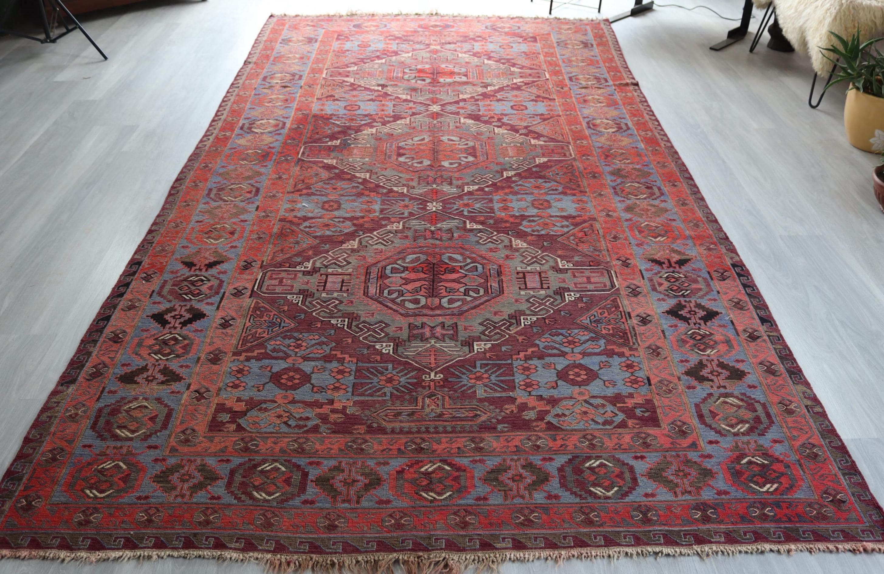 6'2''x12'2'' Soumak Rug, Vintage Caucasian Kilim Rug , Large Bohemian Red Rug / N-2079 / 190x372 cm