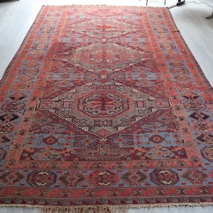 6'3''x9'5'' Bohemian Rug , Brown Wool Rug, Ethnic Handwoven Area Kilim Rug / N-2062