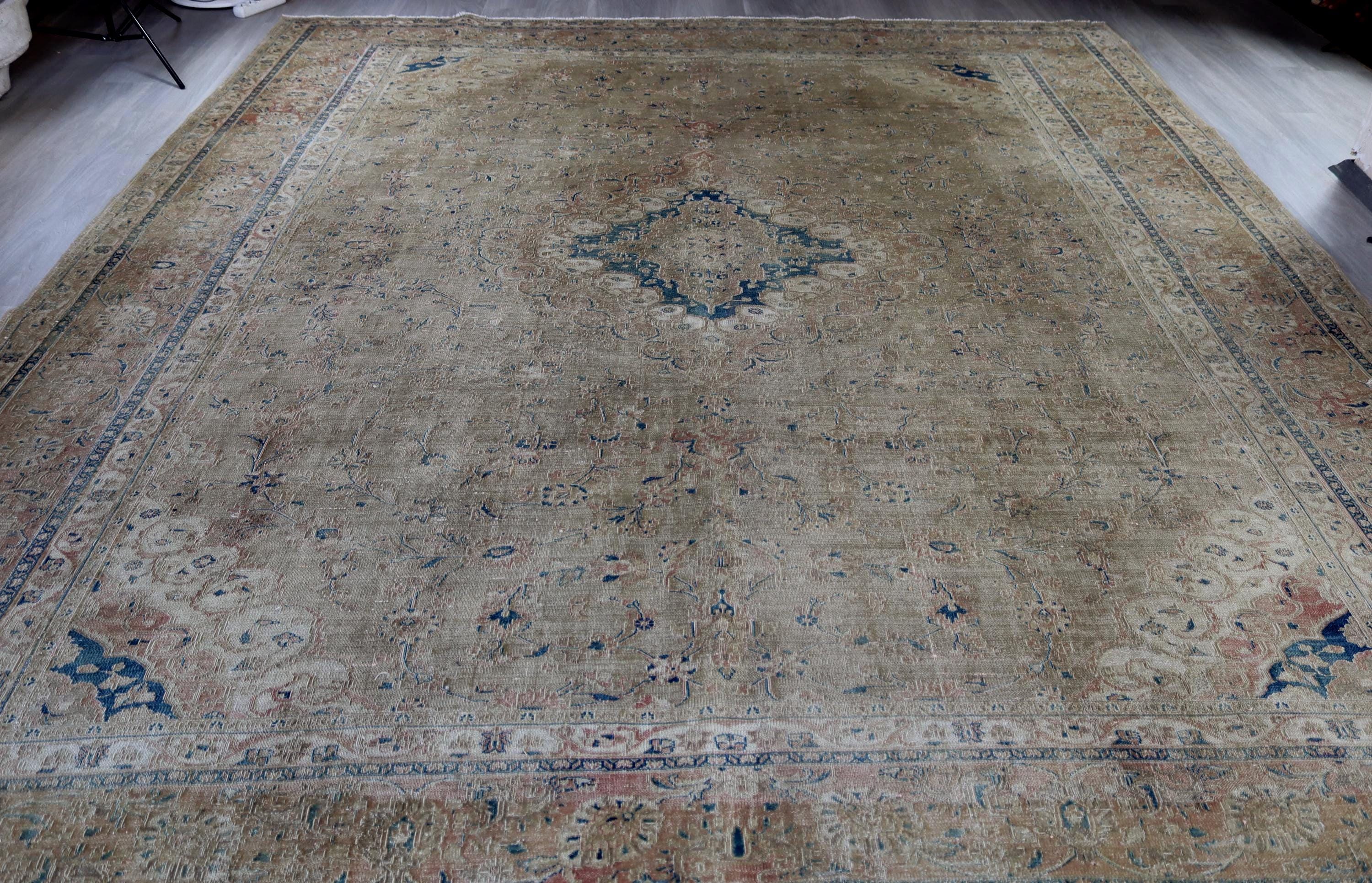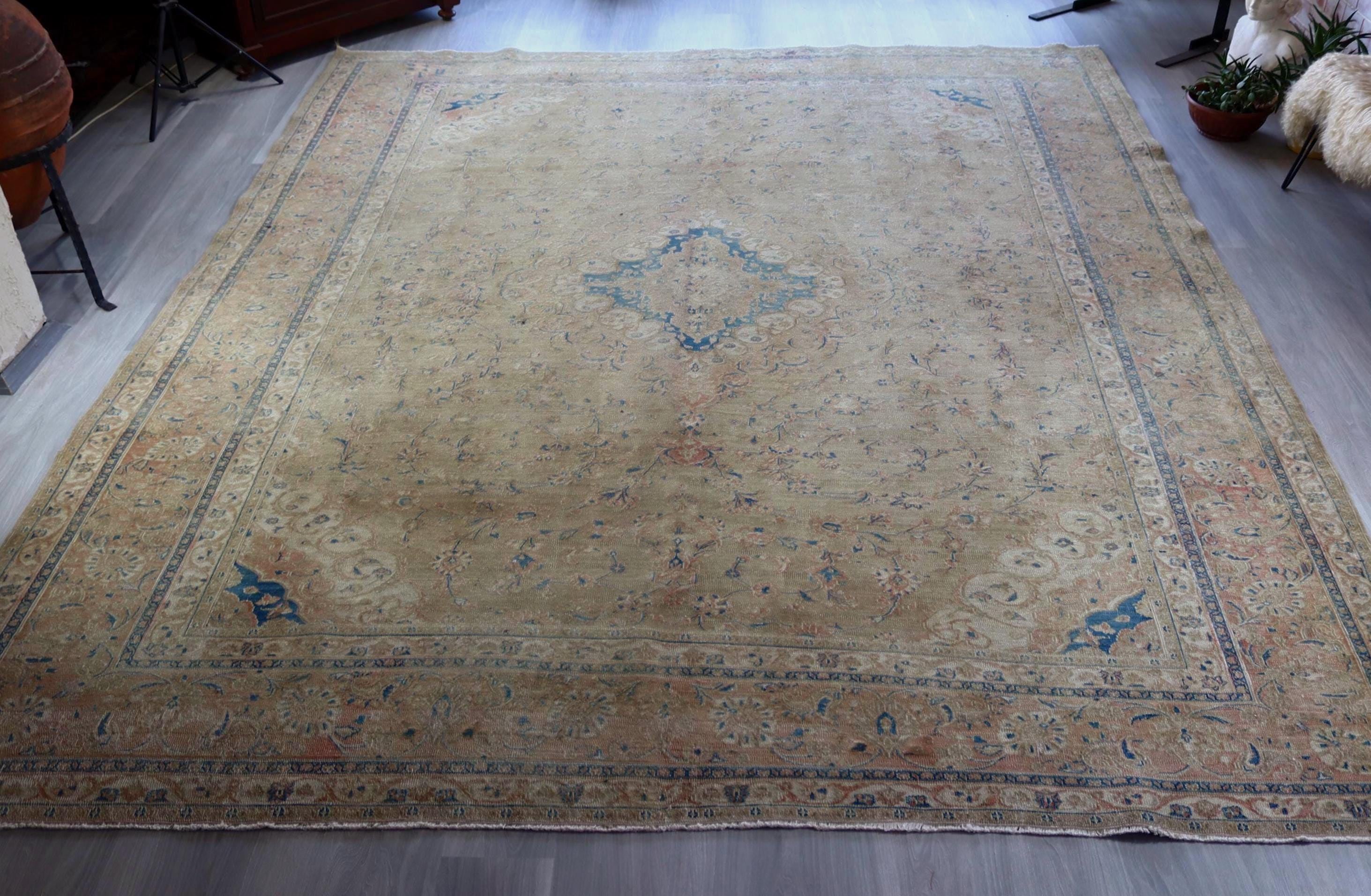10'2''x12'5'' Oversized Beige Rug, Large Oushak Rug, Large Beige-Blue Rug, Pale Oushak Rug / C-6078 / 10'x13' Rugs