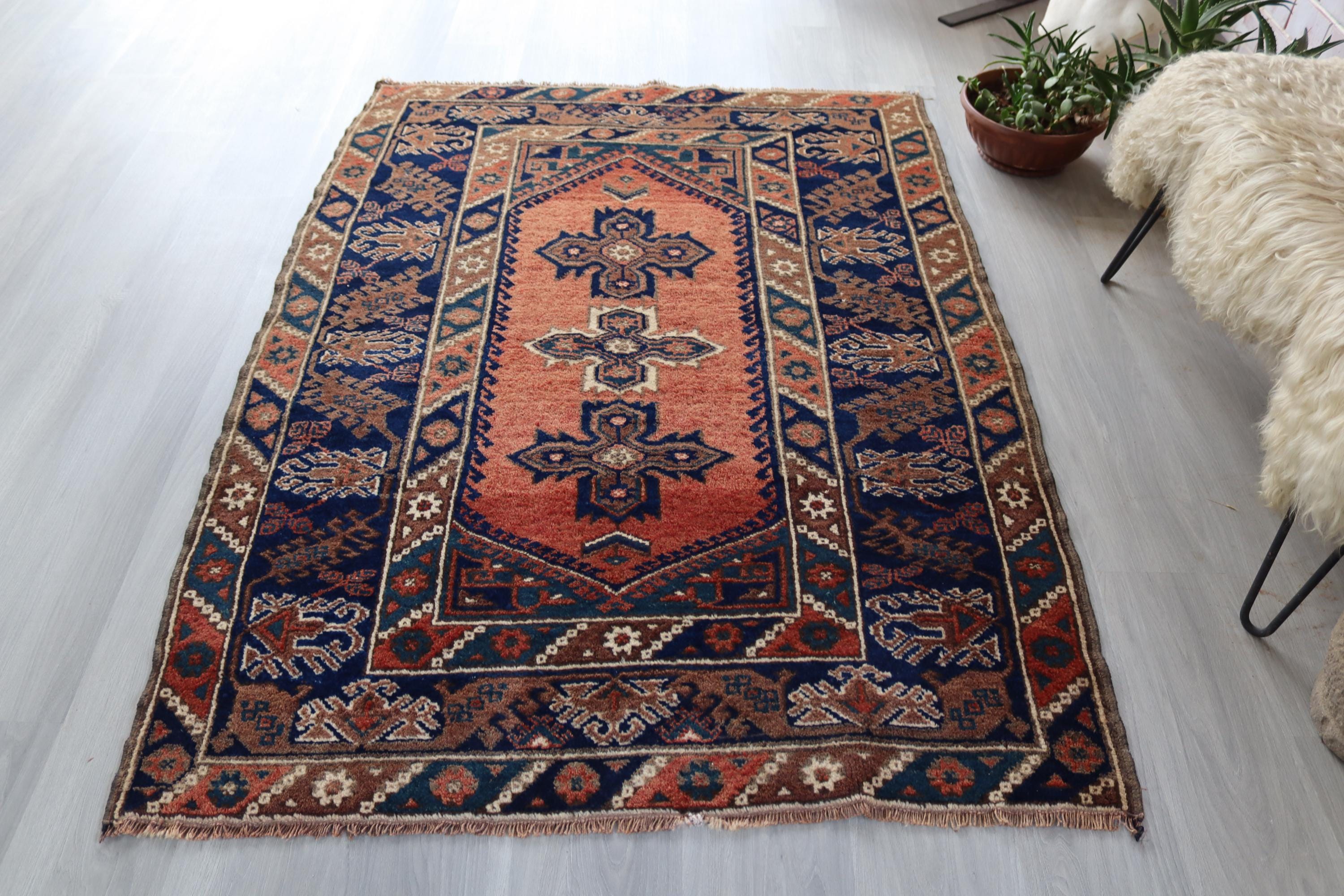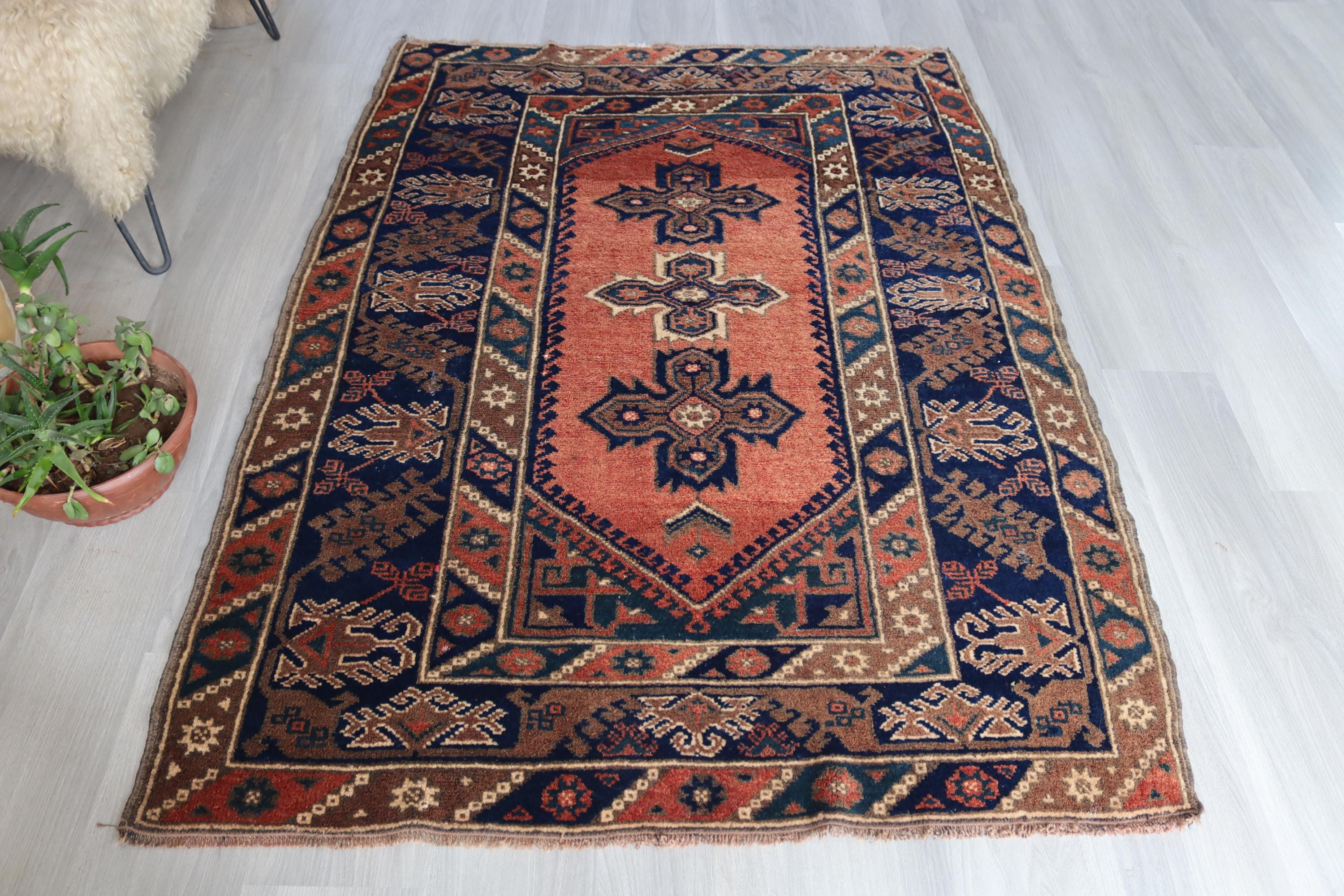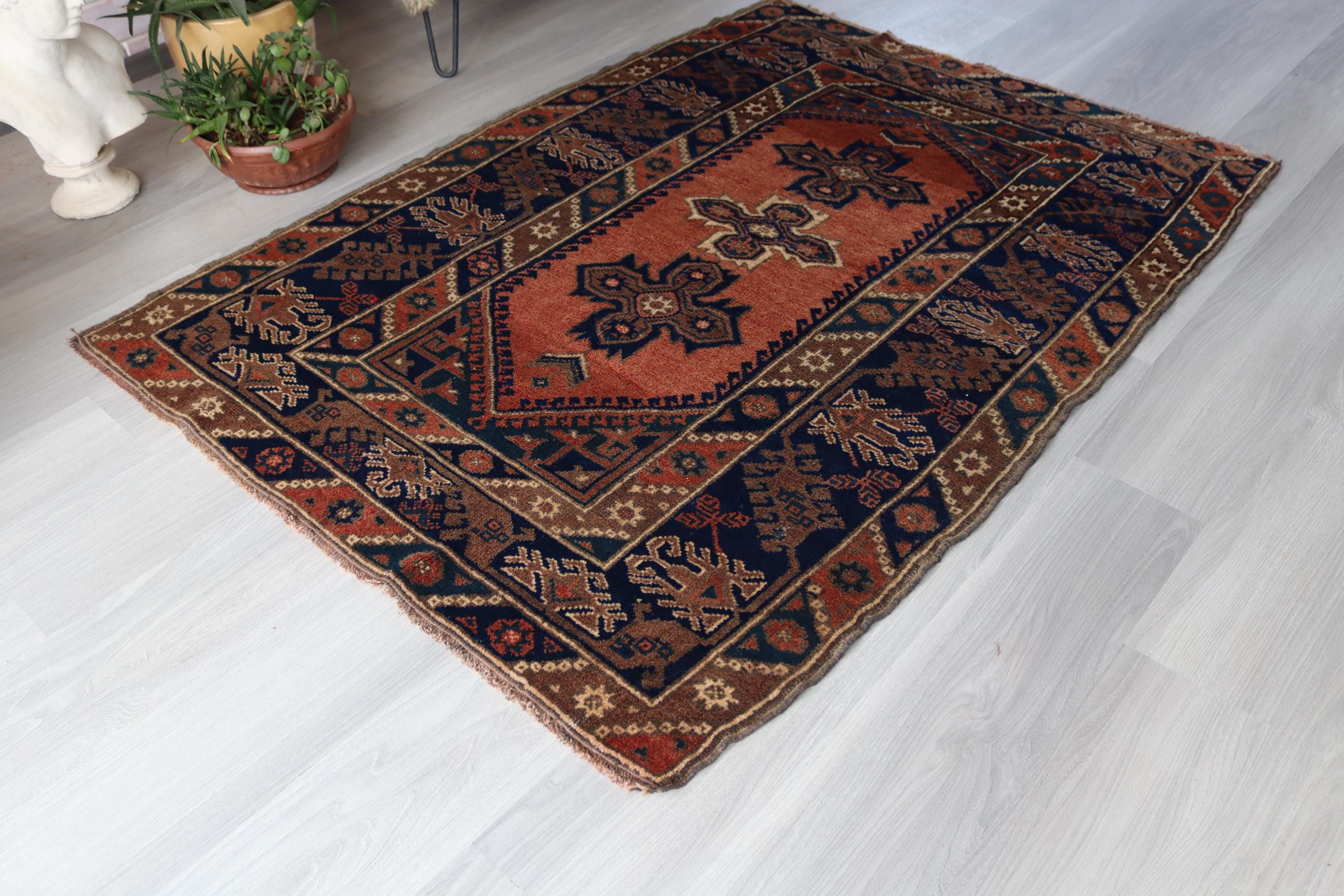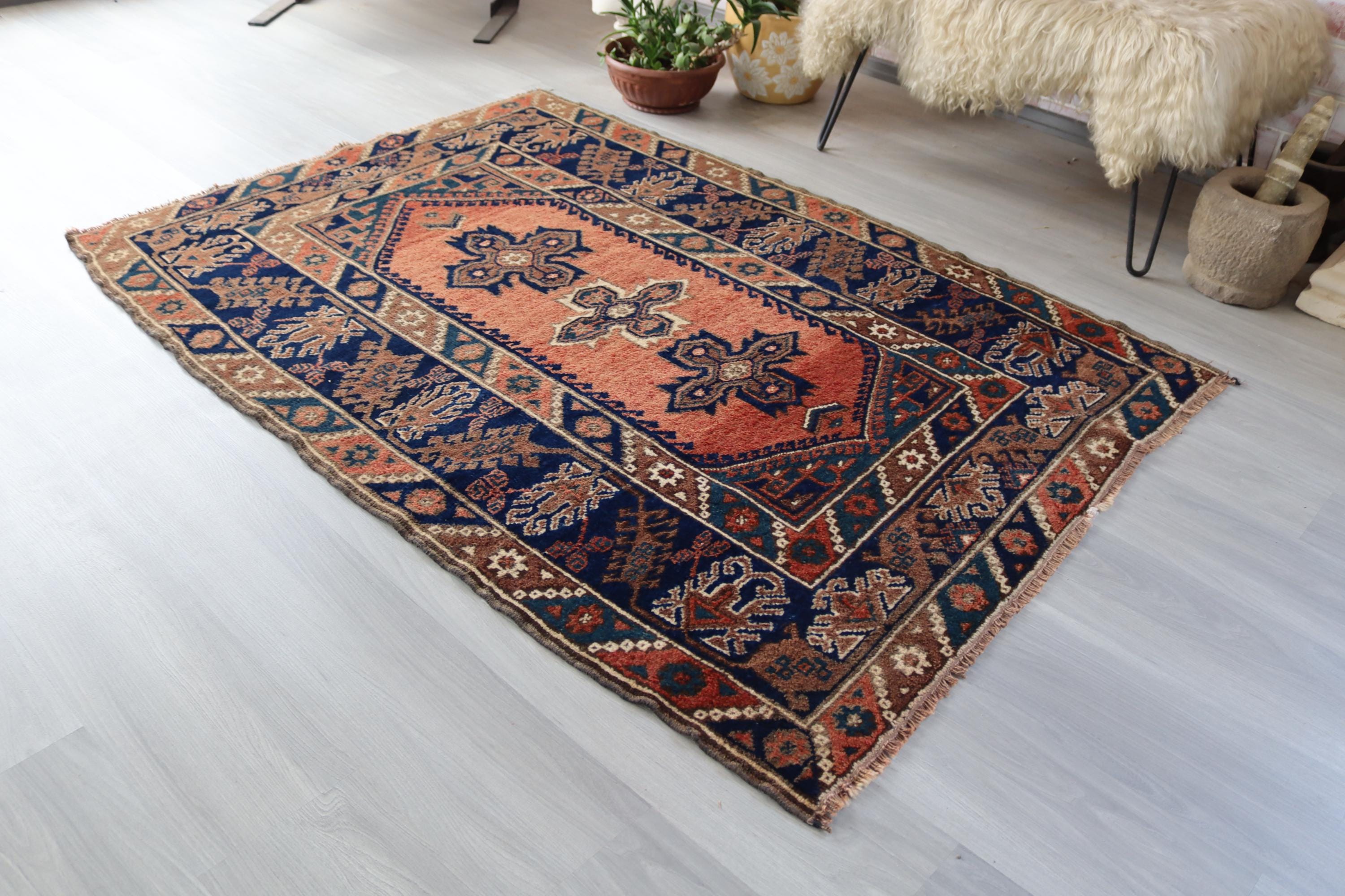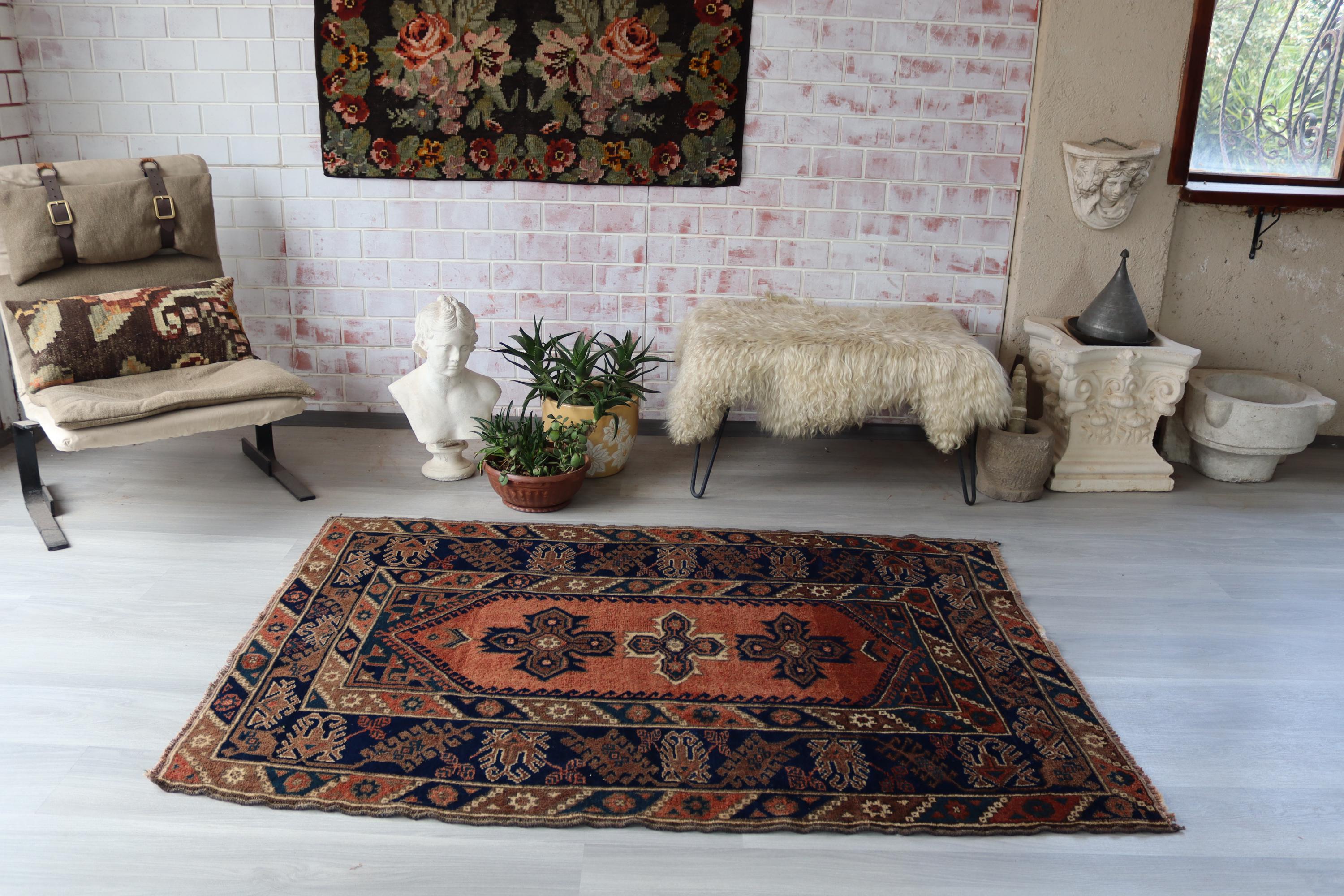 4'3''x5'9'' Vintage Nomad Rug, Handwoven Nomad Rug, Blue-Red Wool Rug / C-6091 / 4'x6' Rugs