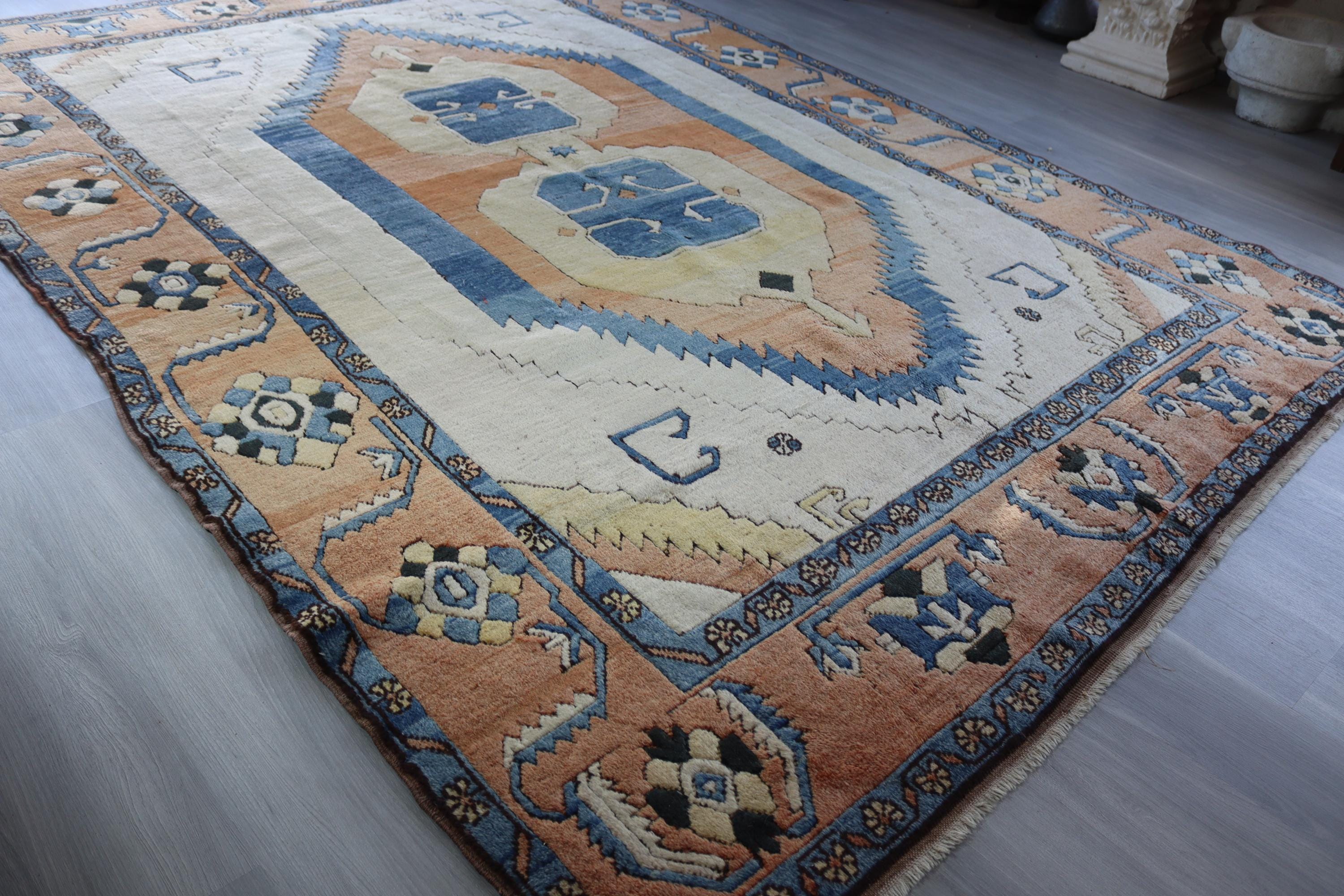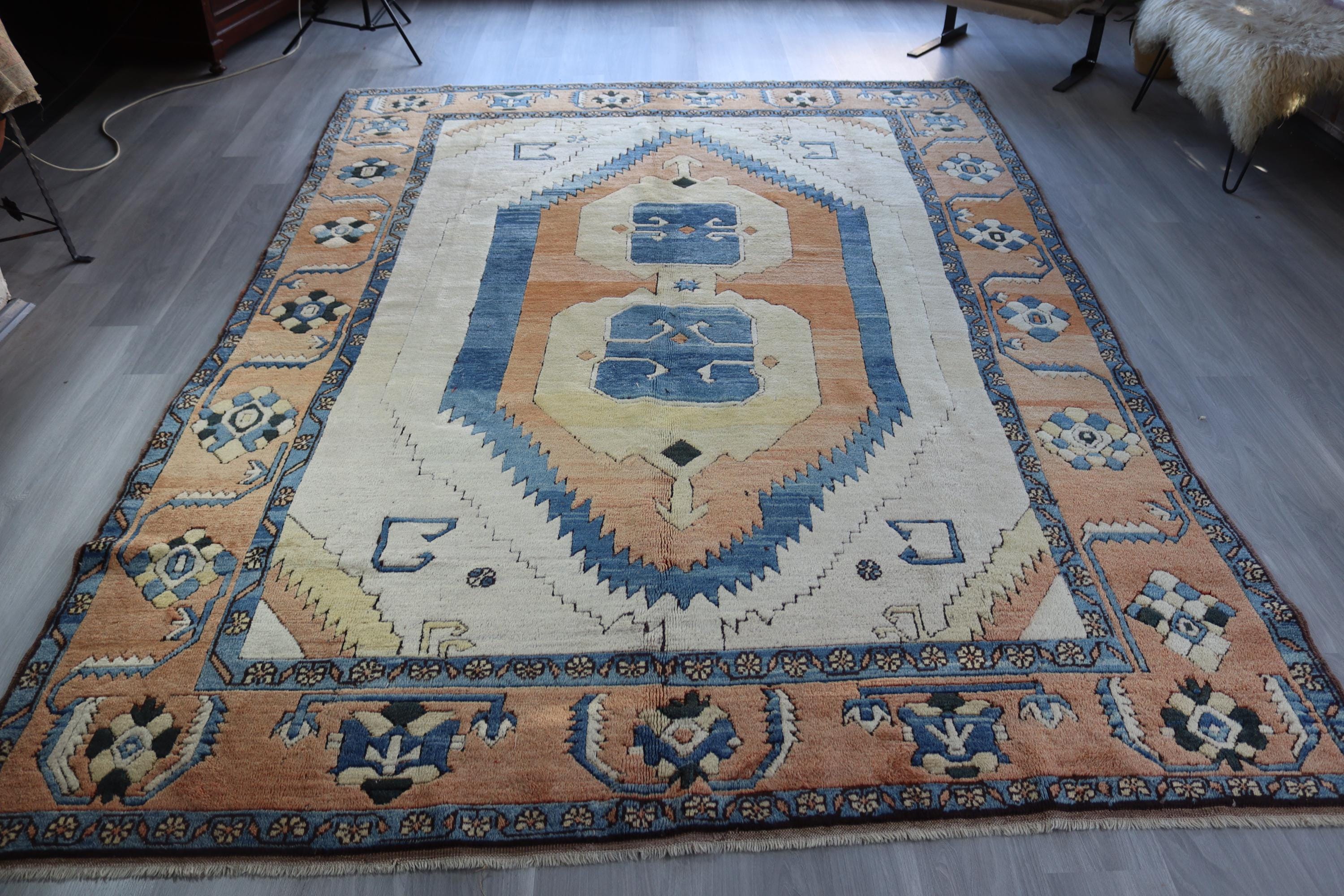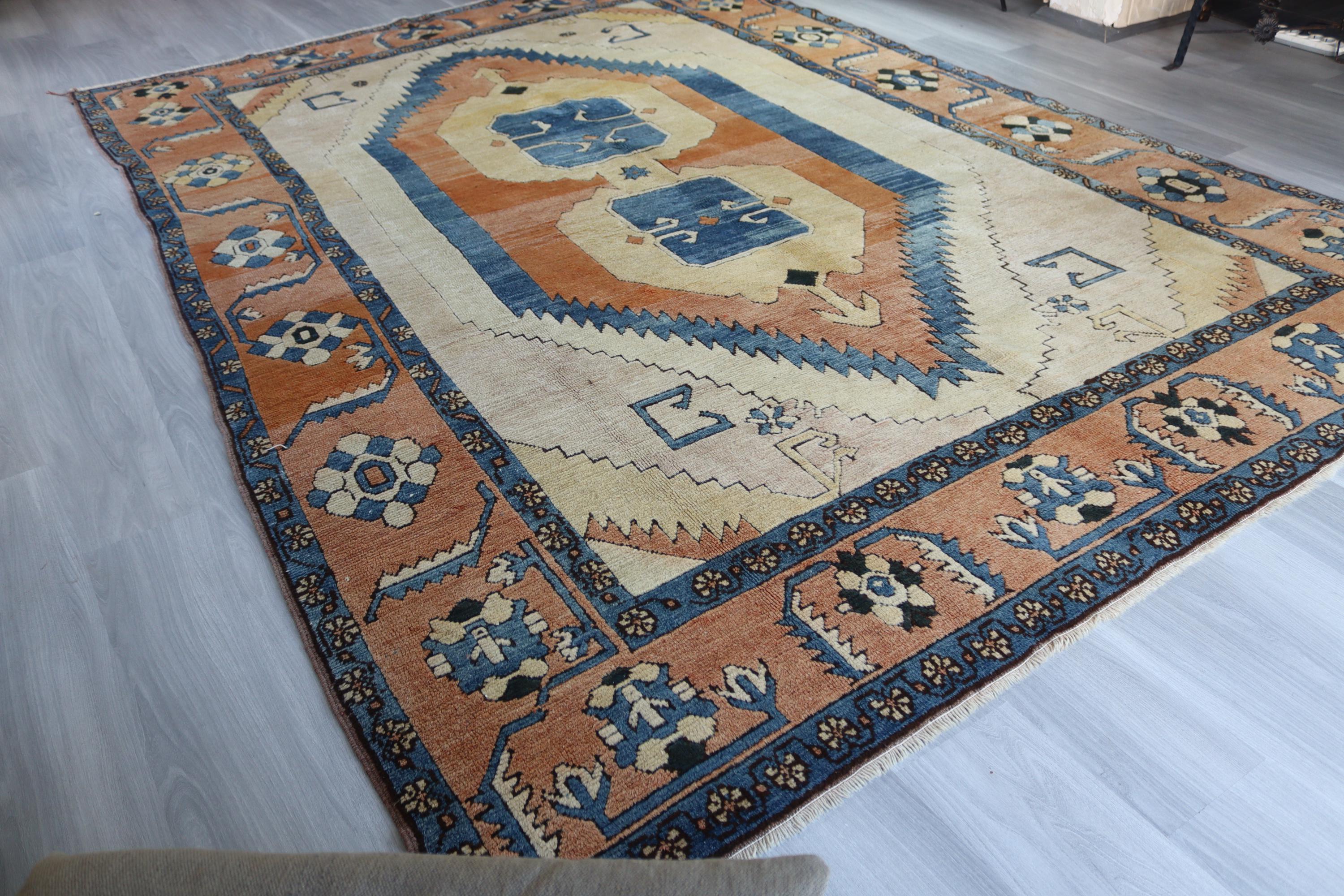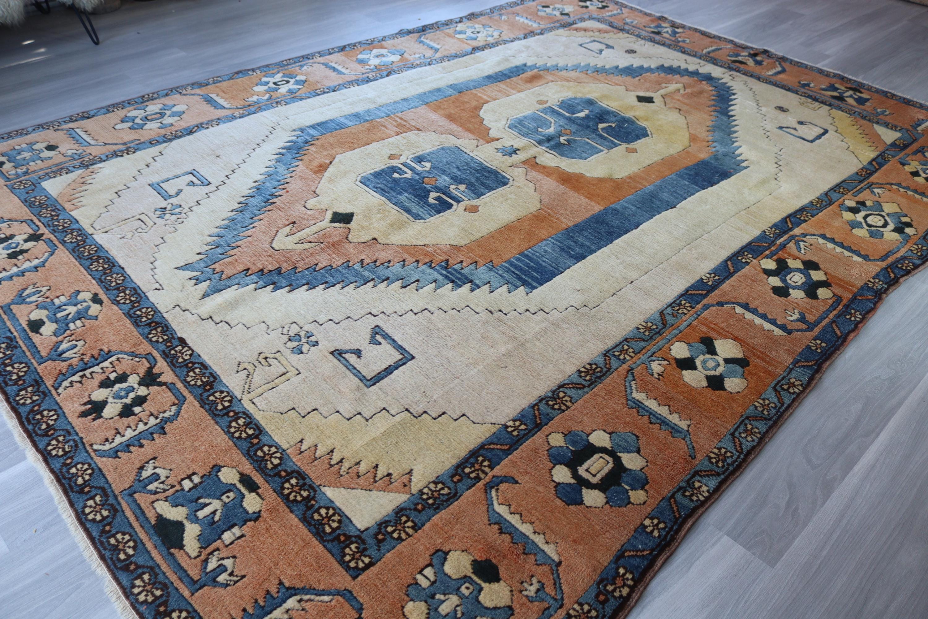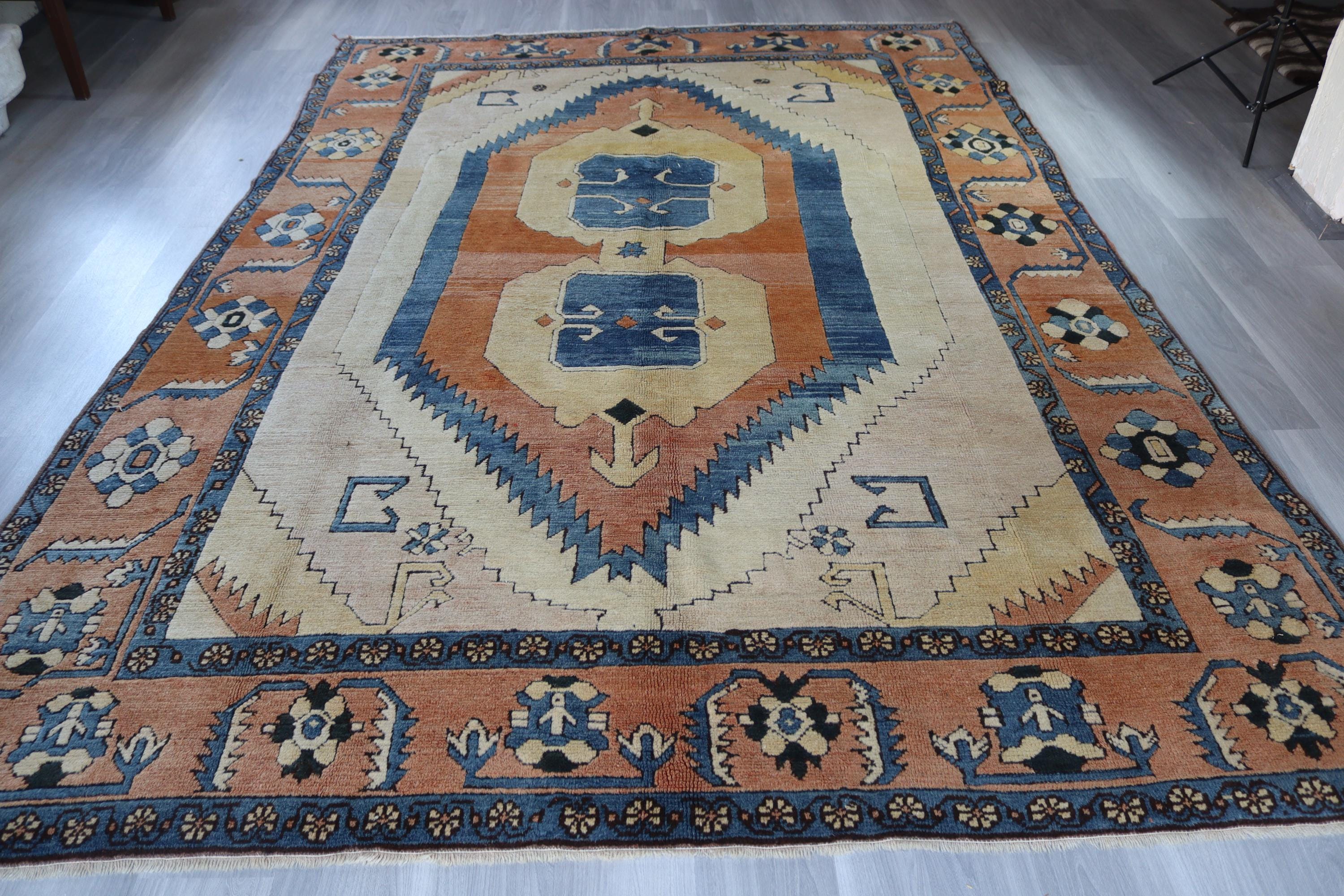 Large Beige Rug, Bohemian Wool Rug, Vintage Oushak Rug / C-6201 / 8'x11'5''