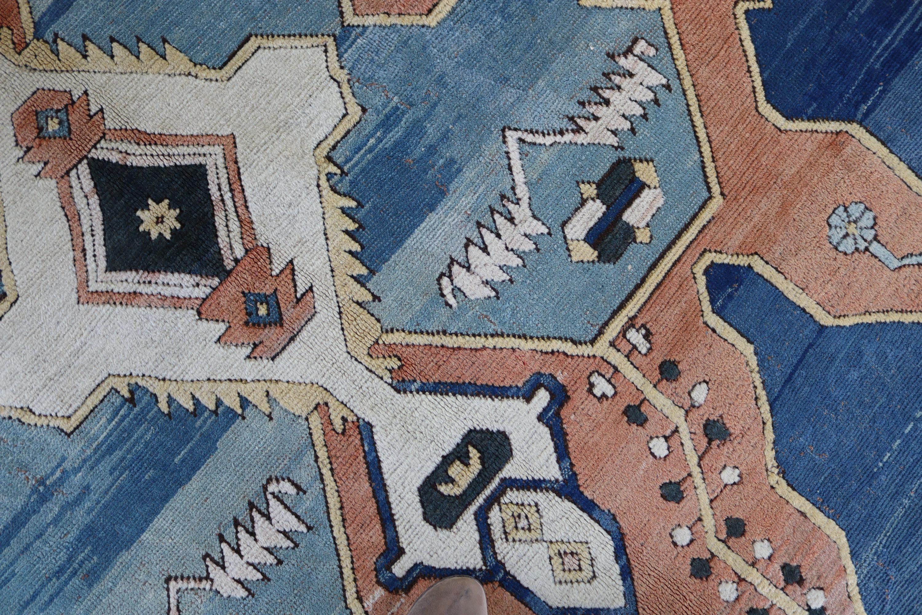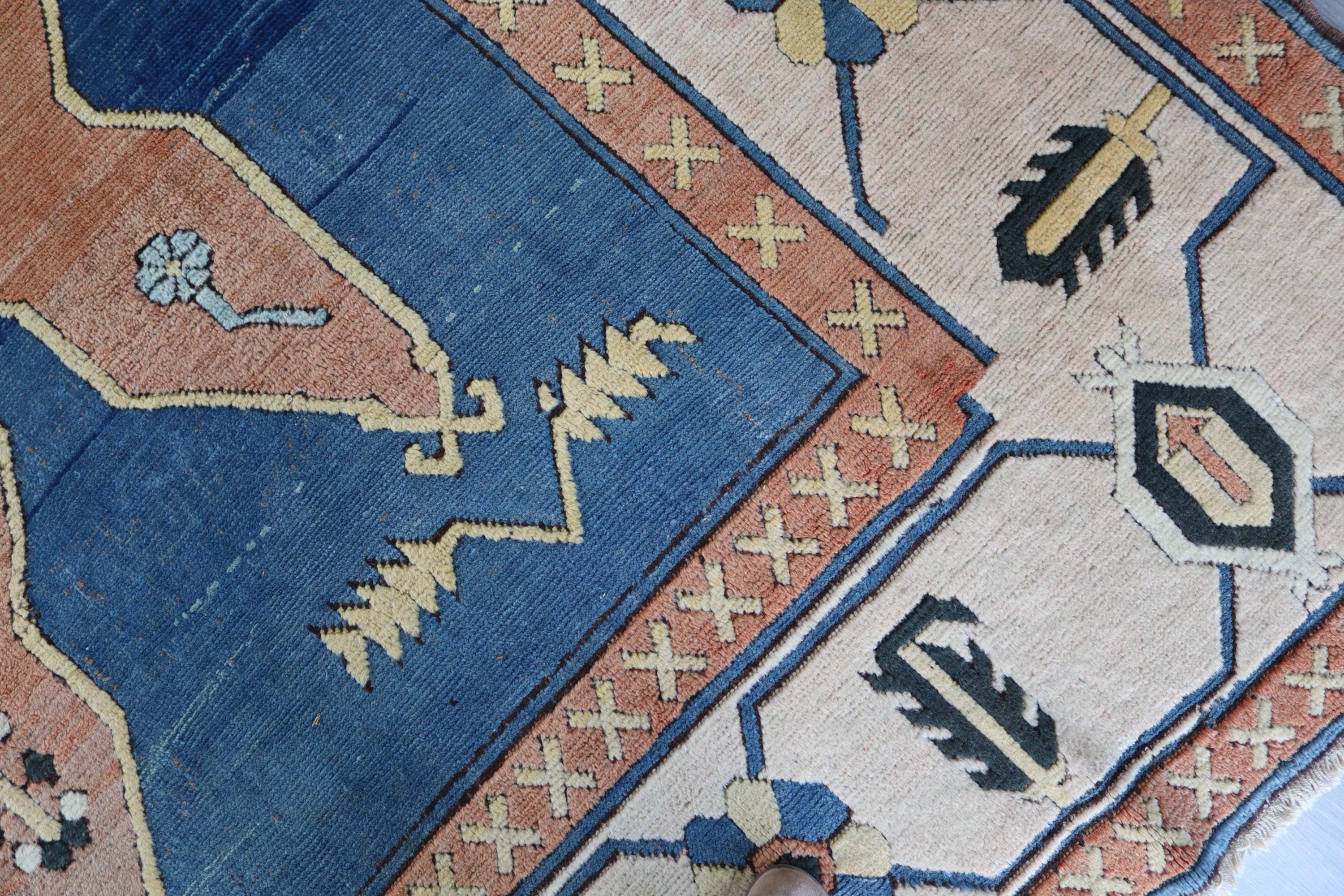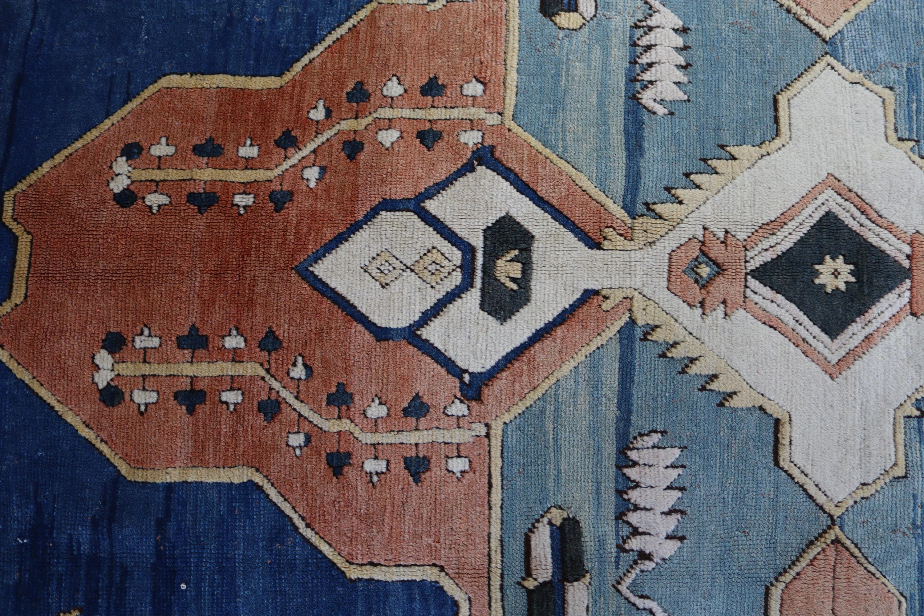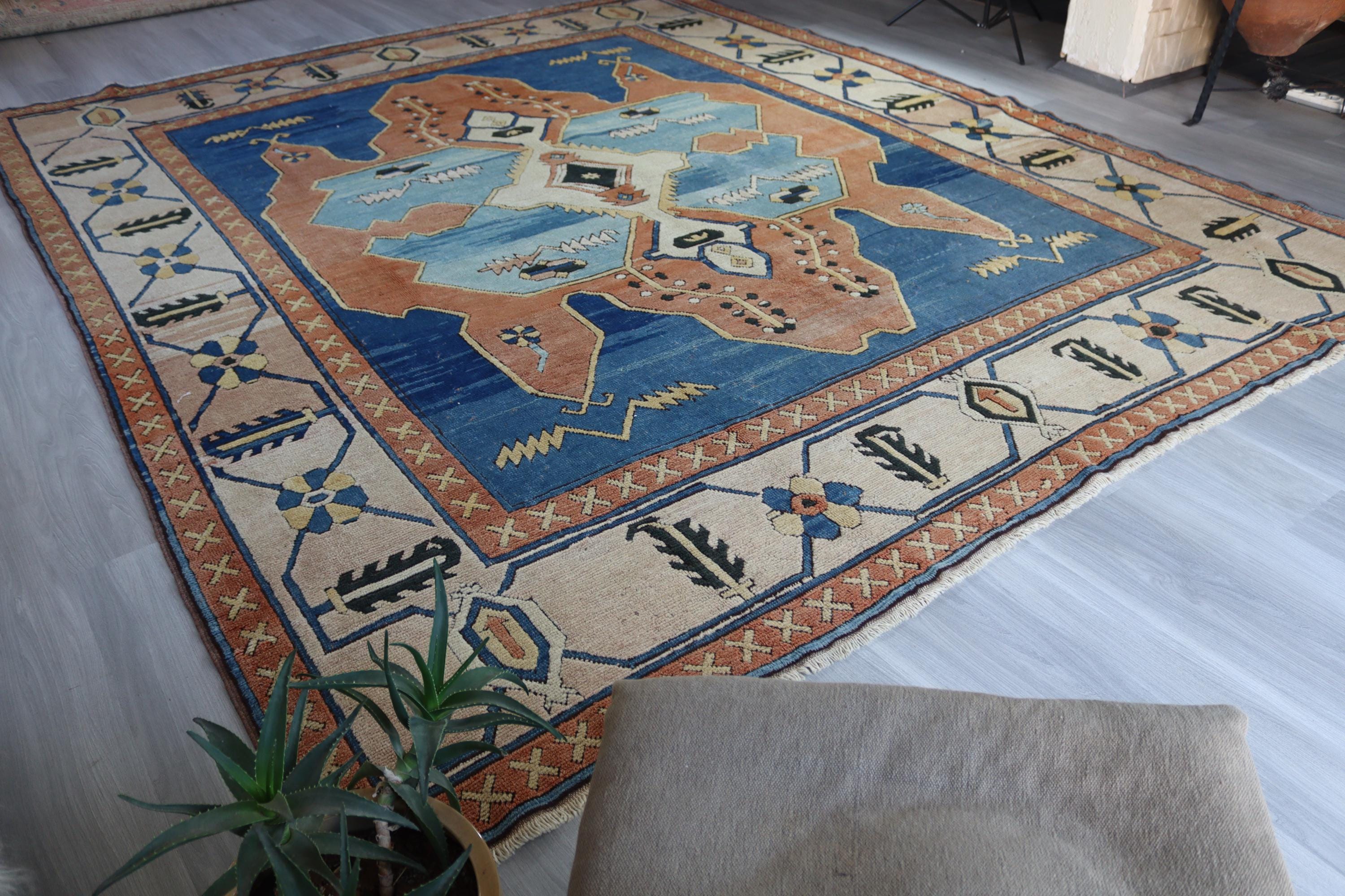 Blue-Salmon Rug, Large Area Rug, Vintage Turkish Rug , Geometric Rug, Medallion Rug / C- 6206 / 9'8''x11'9''