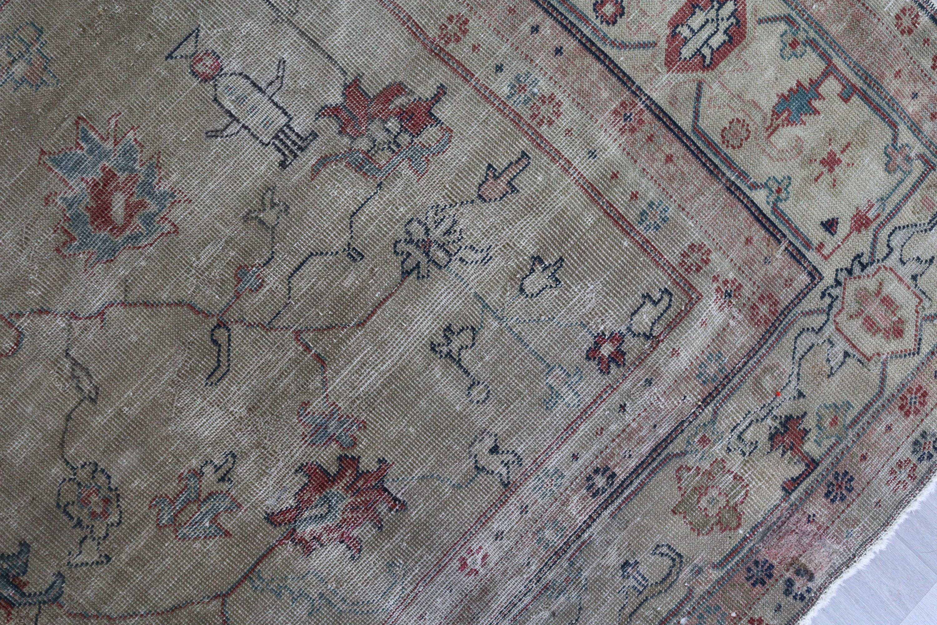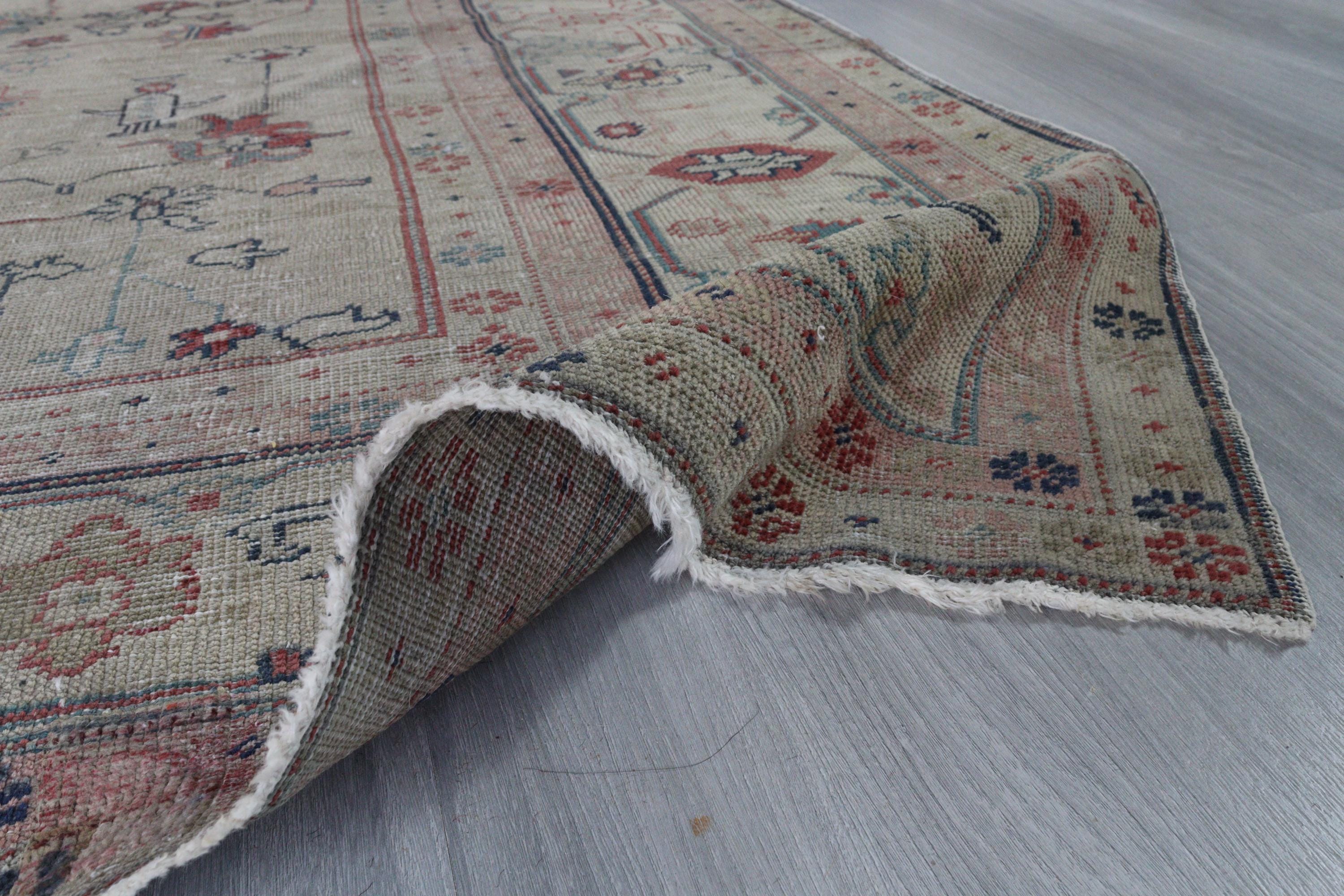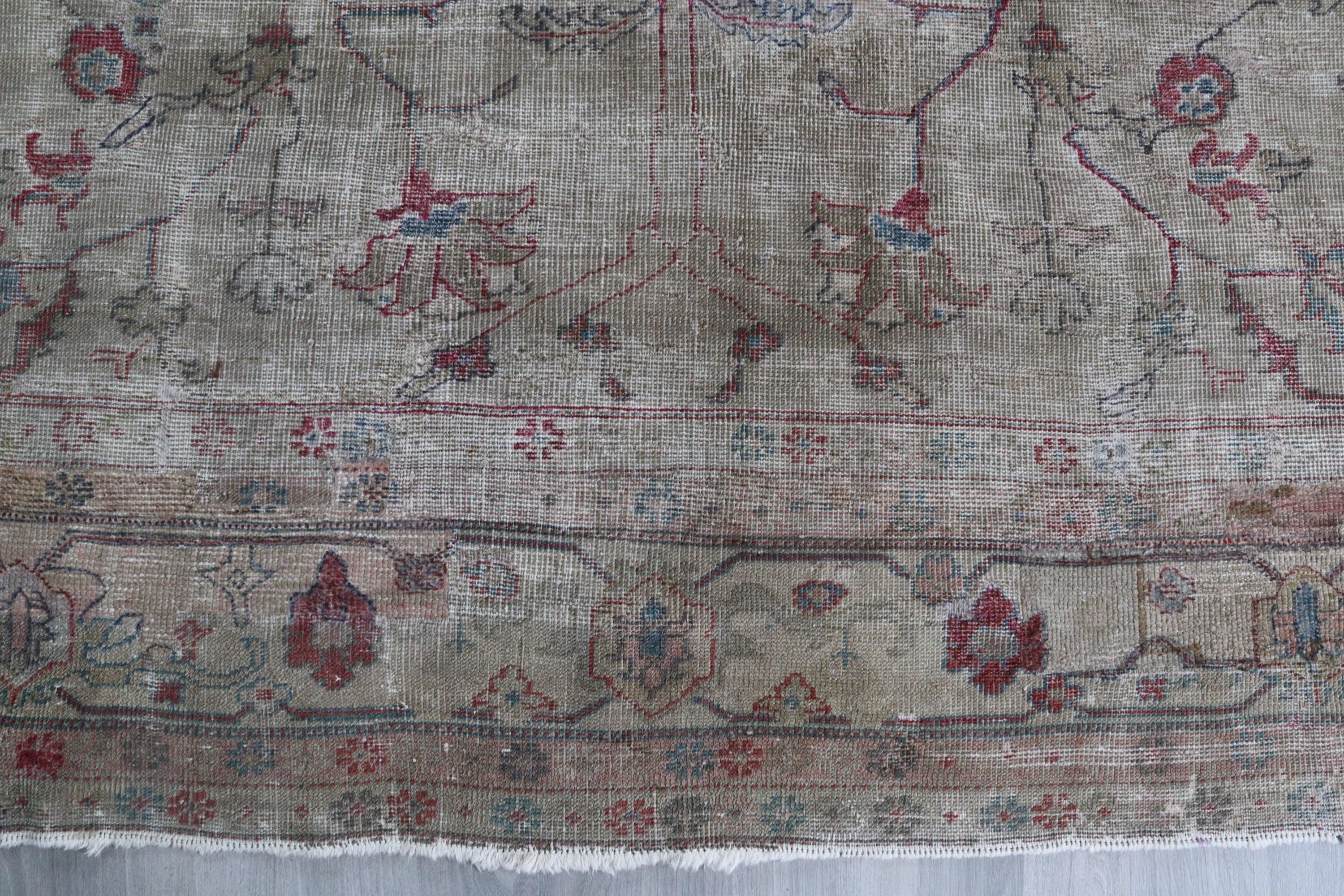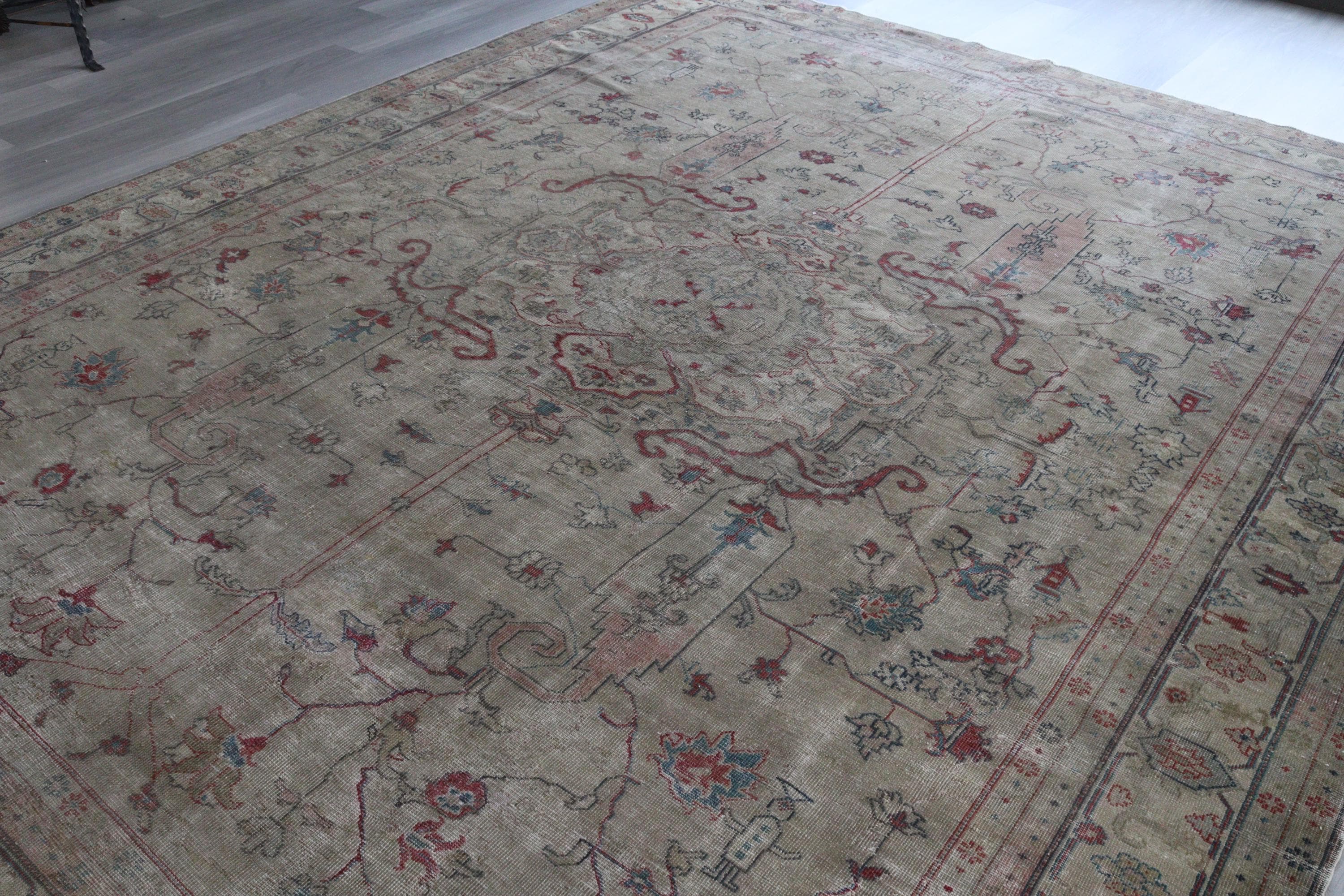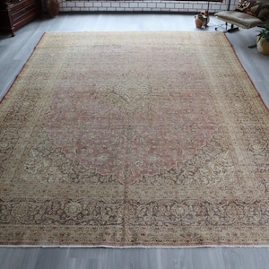 Antique Oushak Rug, Distressed Pale Rug, Large Low Piled Rug , Vintage Oushak Rug / C-6221 / 8'8''x11'2''