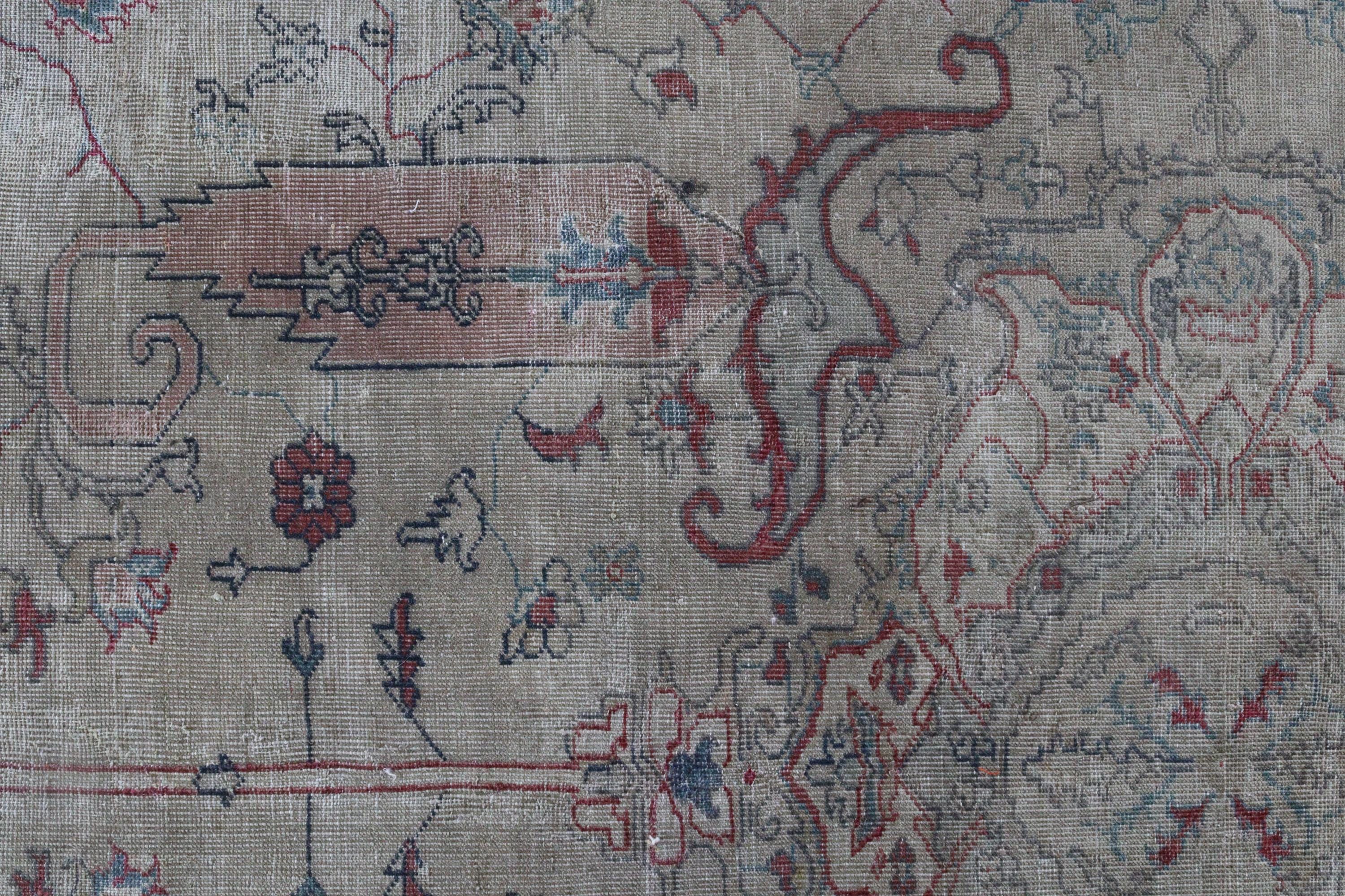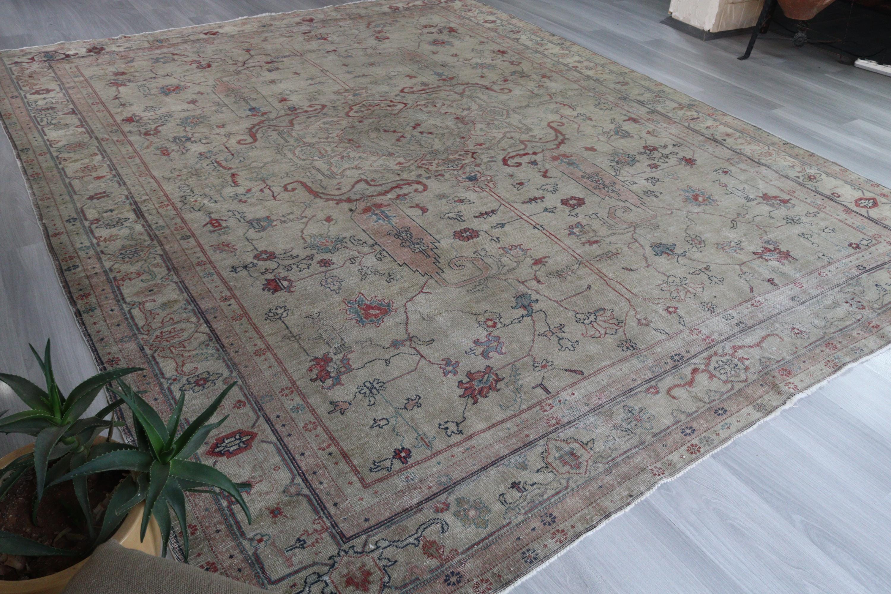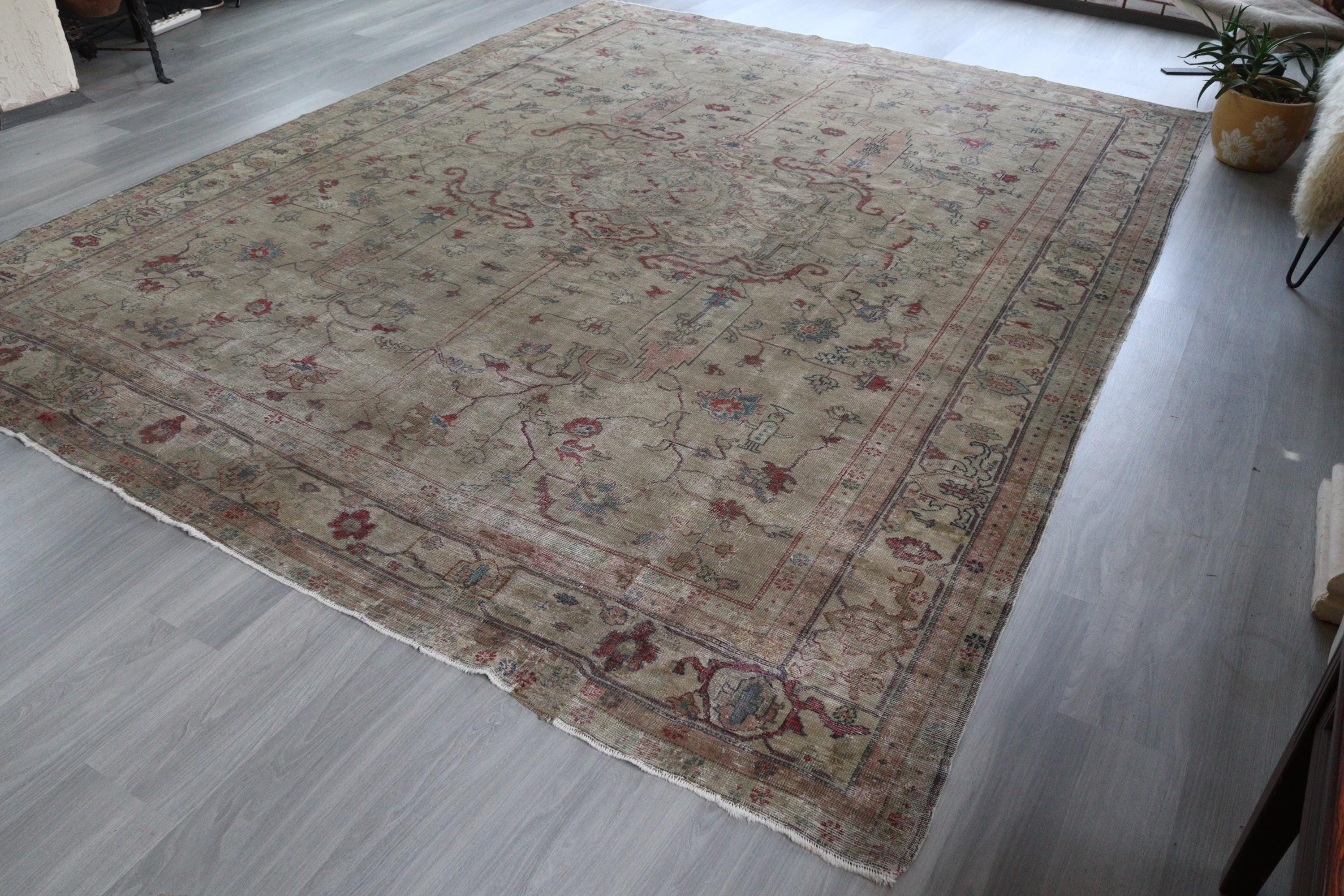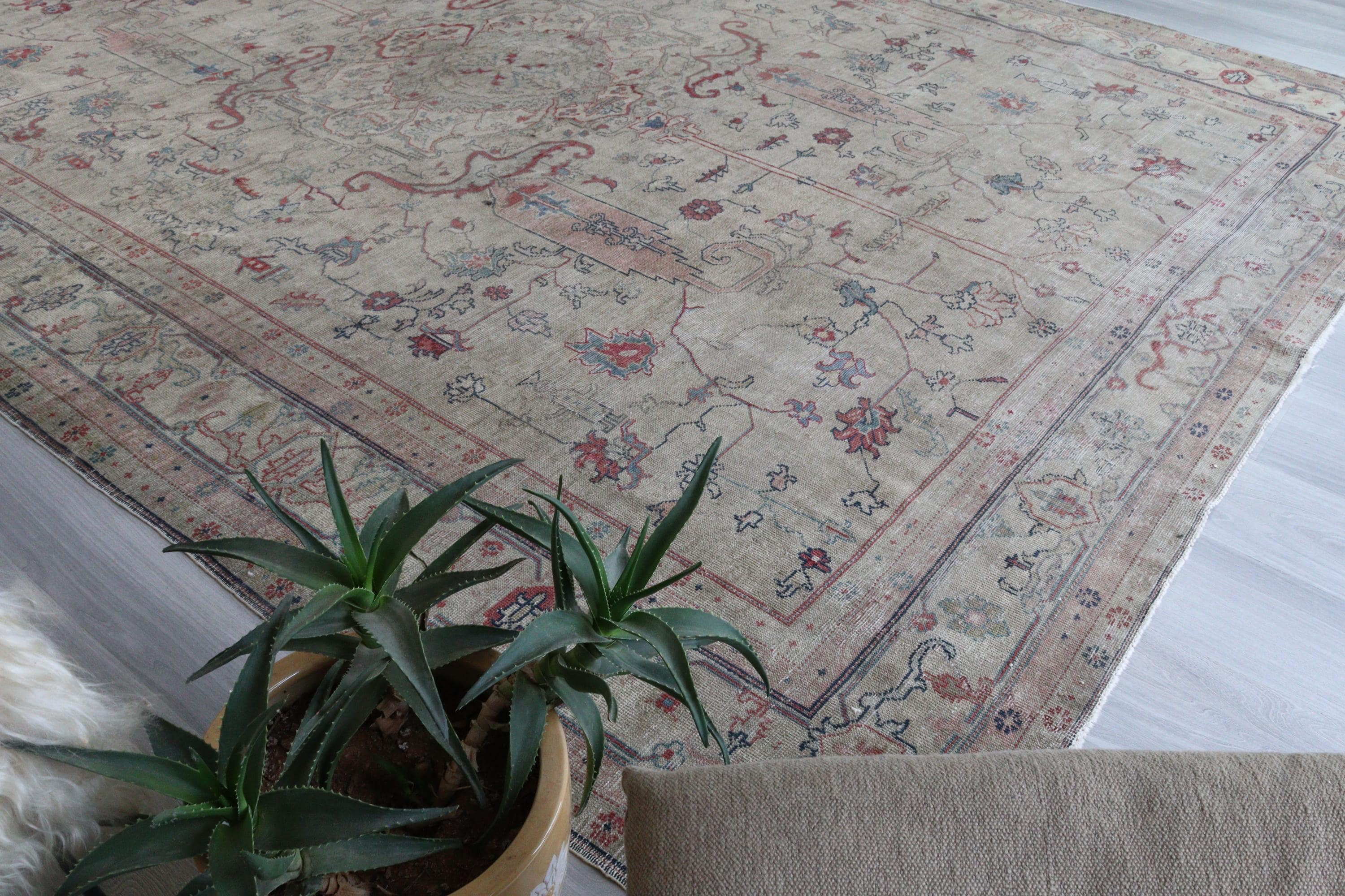 Antique Oushak Rug, Distressed Pale Rug, Large Low Piled Rug , Vintage Oushak Rug / C-6221 / 8'8''x11'2''