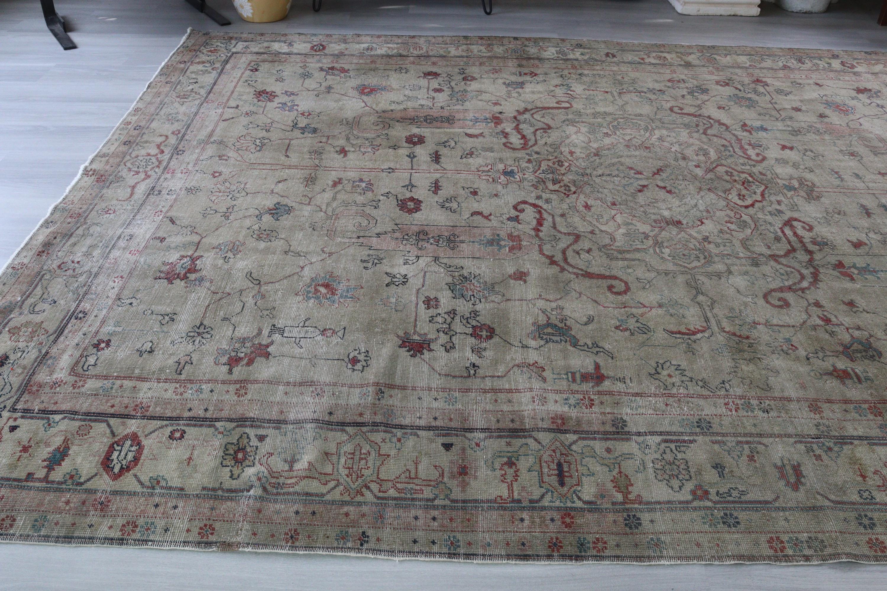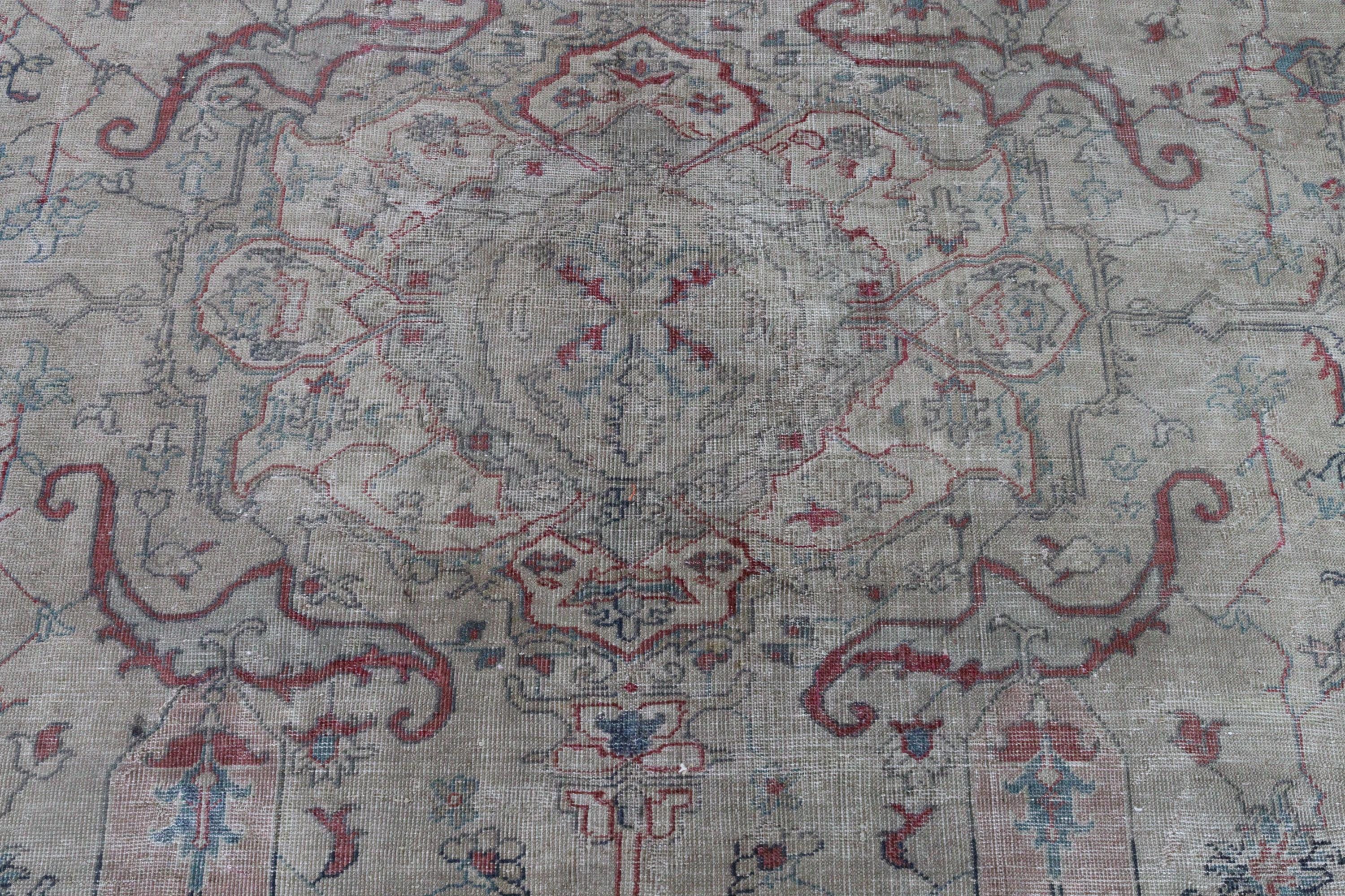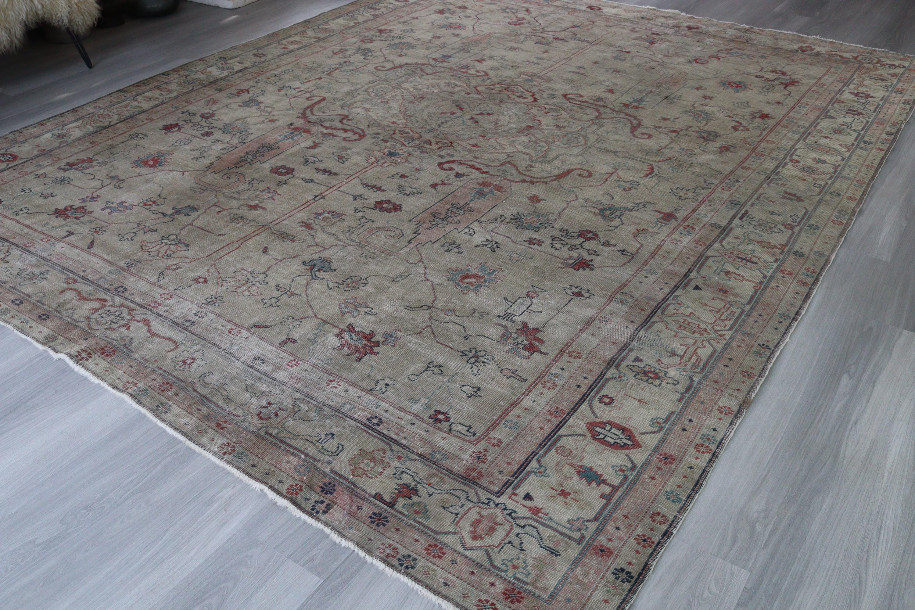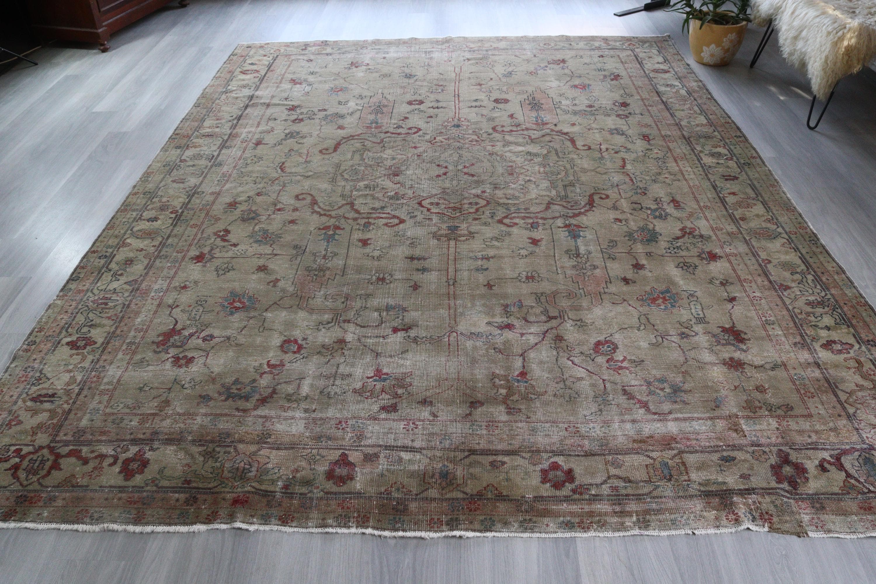 Antique Oushak Rug, Distressed Pale Rug, Large Low Piled Rug , Vintage Oushak Rug / C-6221 / 8'8''x11'2''