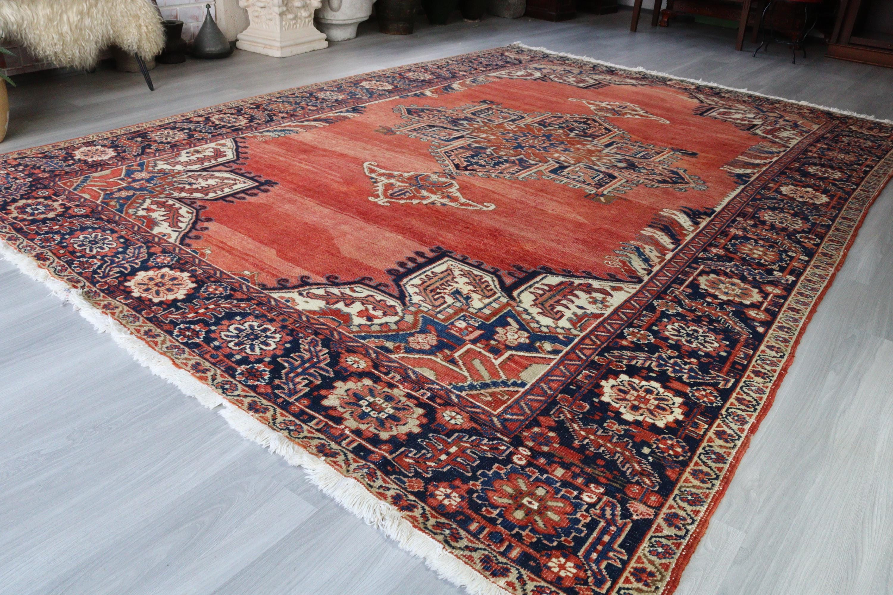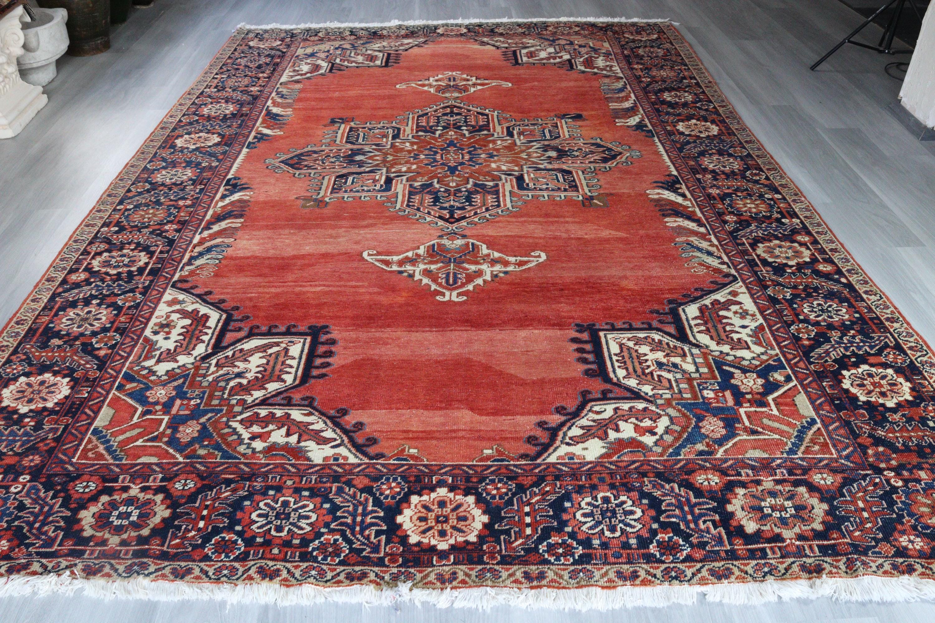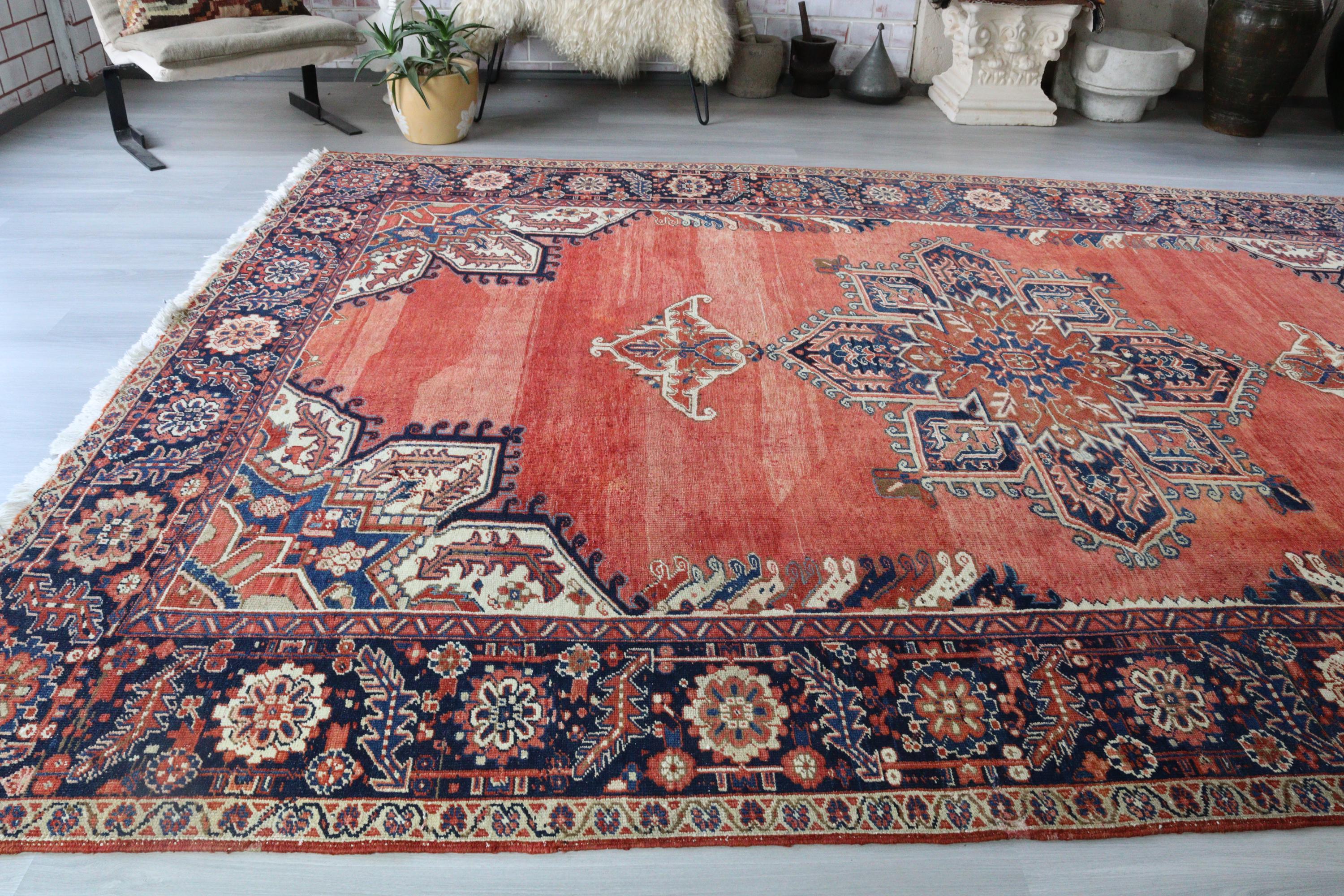 8'x12' Rugs, Large Vintage Rug, Red Medallion Rug, Handwoven Area Rug / C-6226 / 8'4''x12'