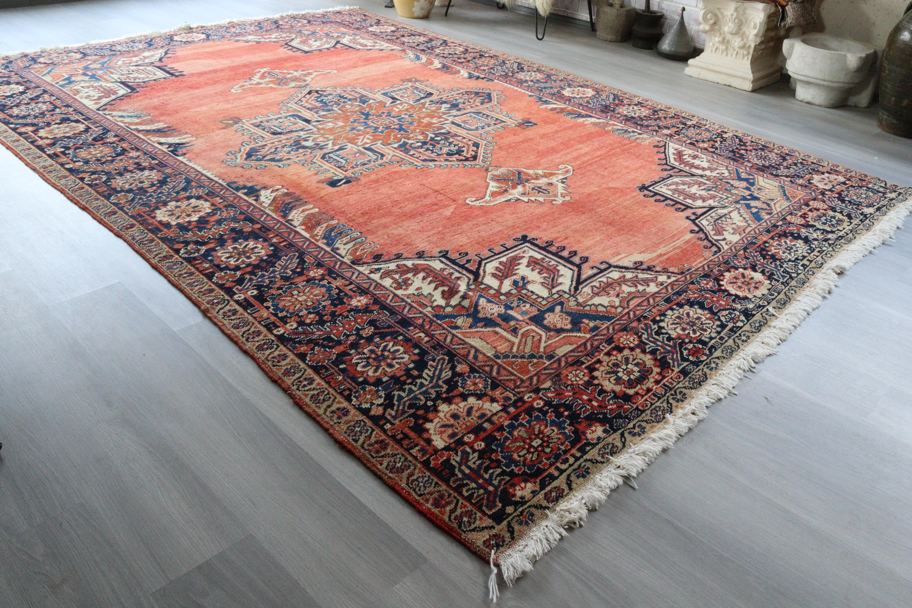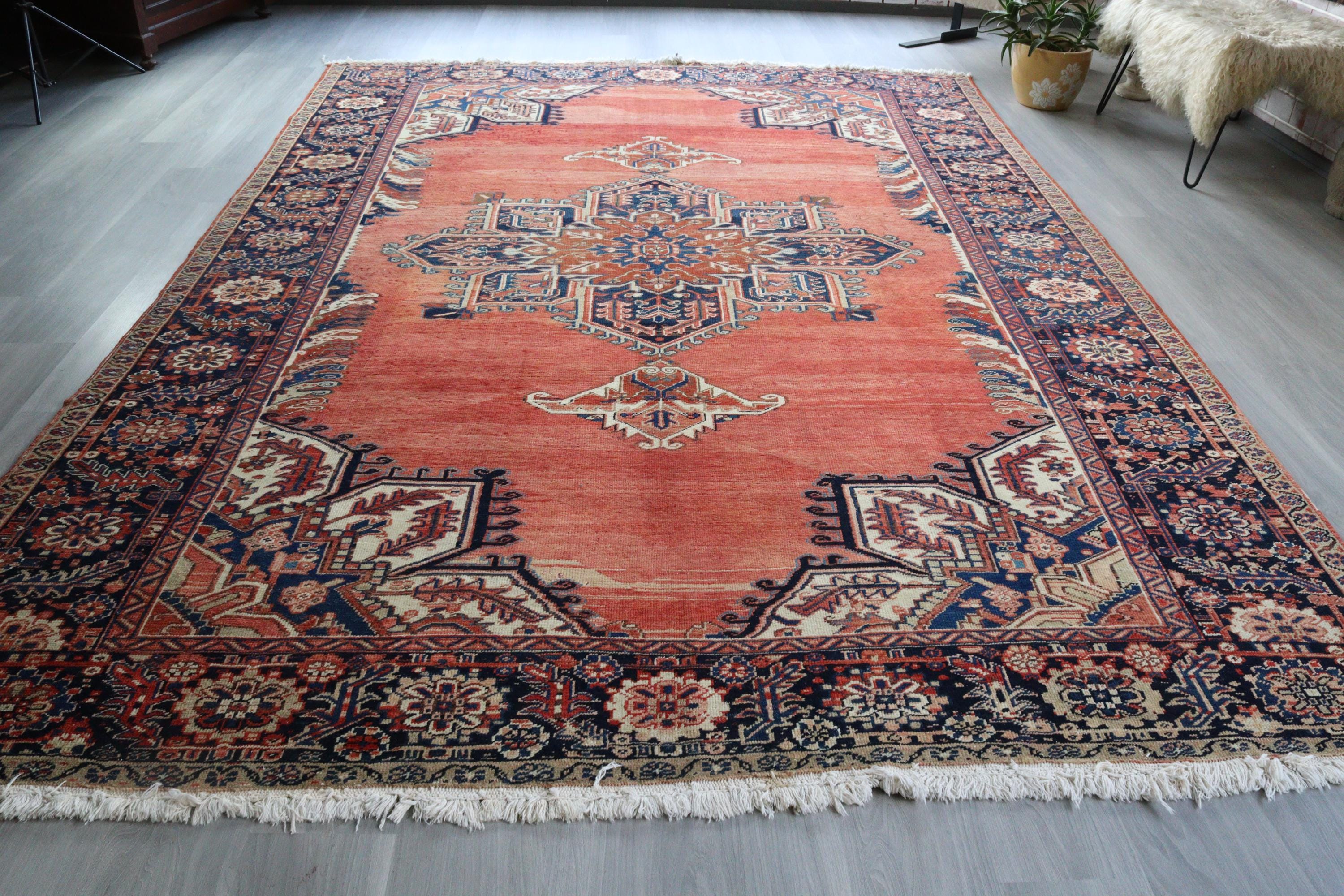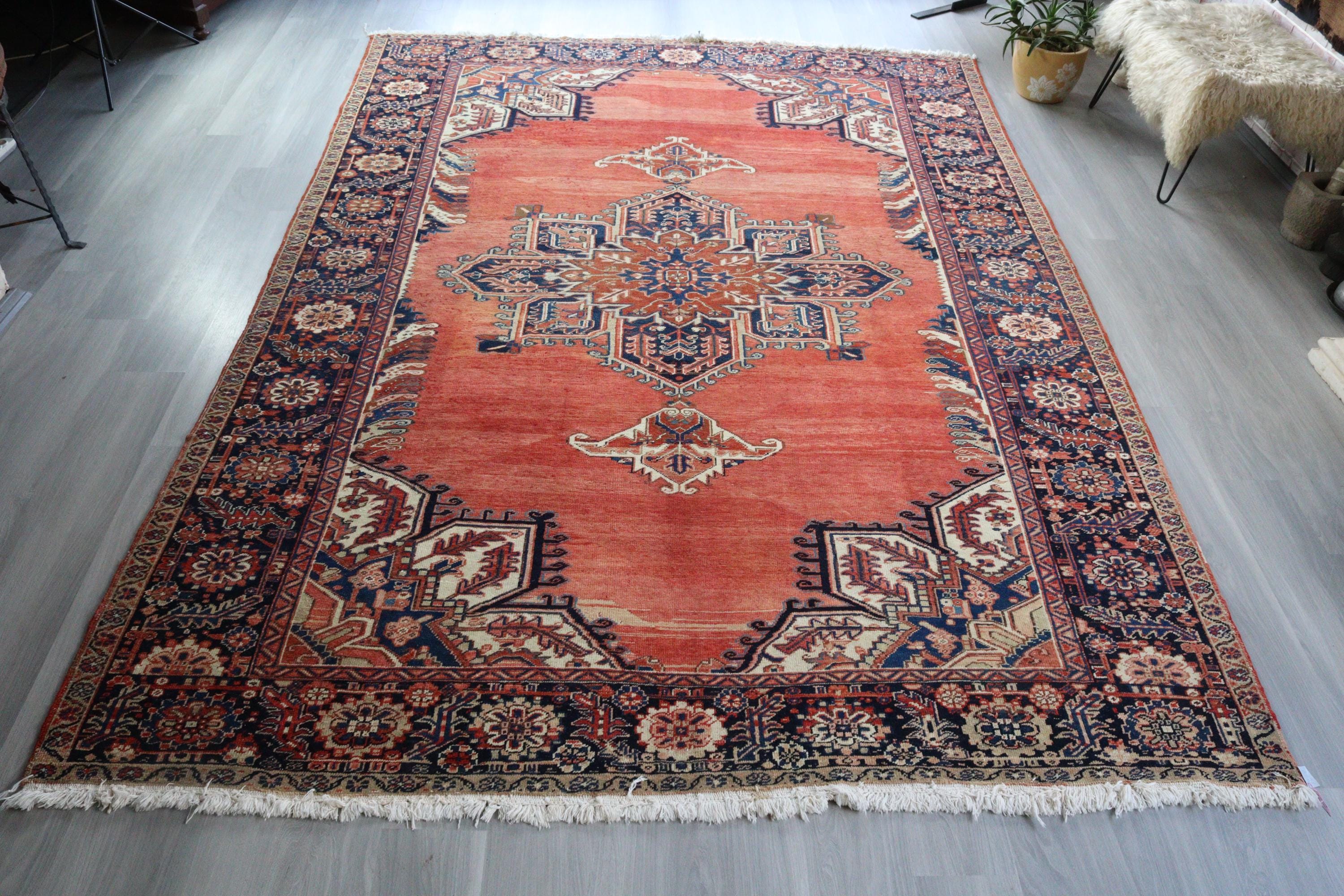 8'x12' Rugs, Large Vintage Rug, Red Medallion Rug, Handwoven Area Rug / C-6226 / 8'4''x12'