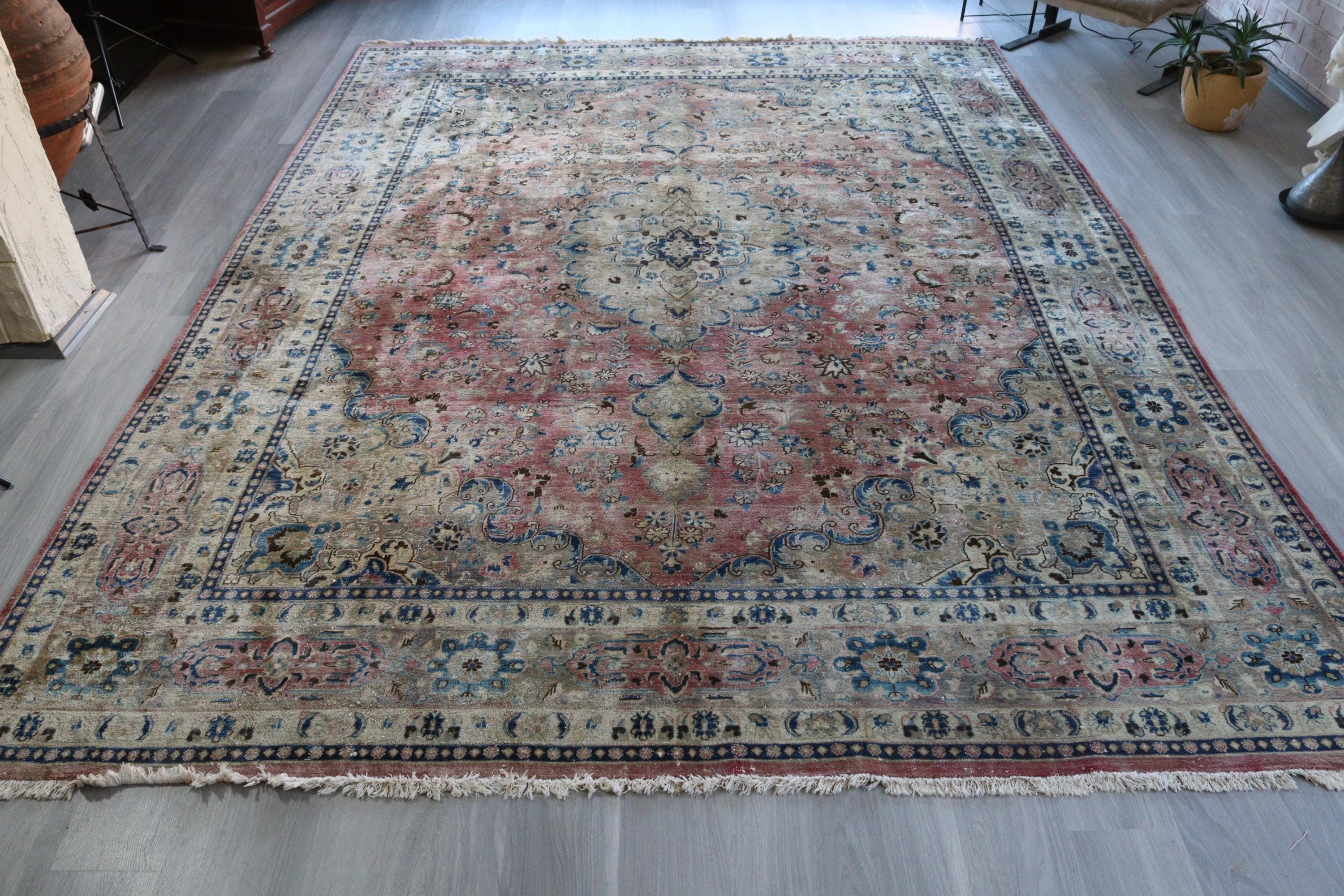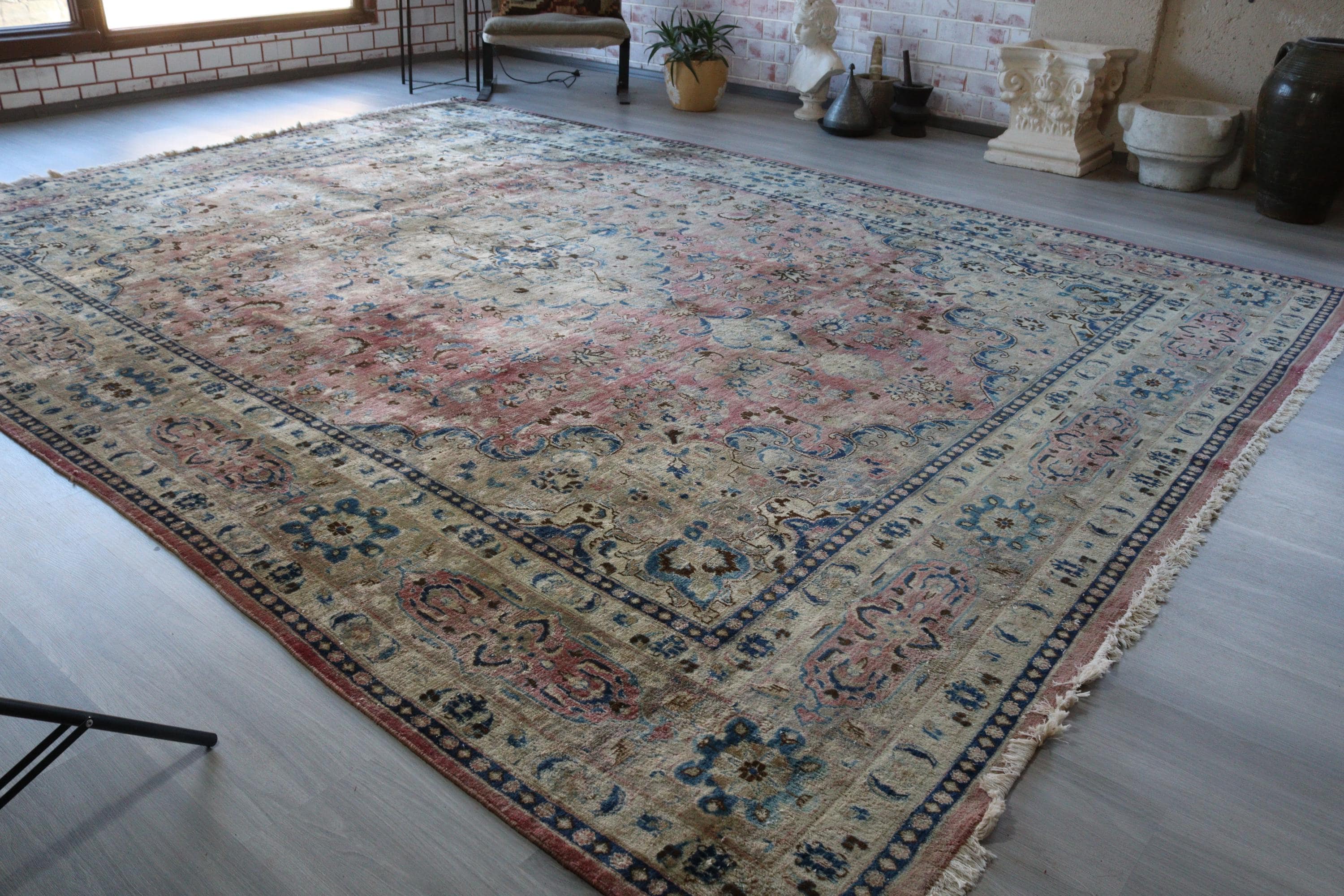 10'x13' Rugs, Over size Pale Rug, Large Vintage Rug, Over size Oushak Rug , Mute Medallion Carpet, Living room Rug / C-6245