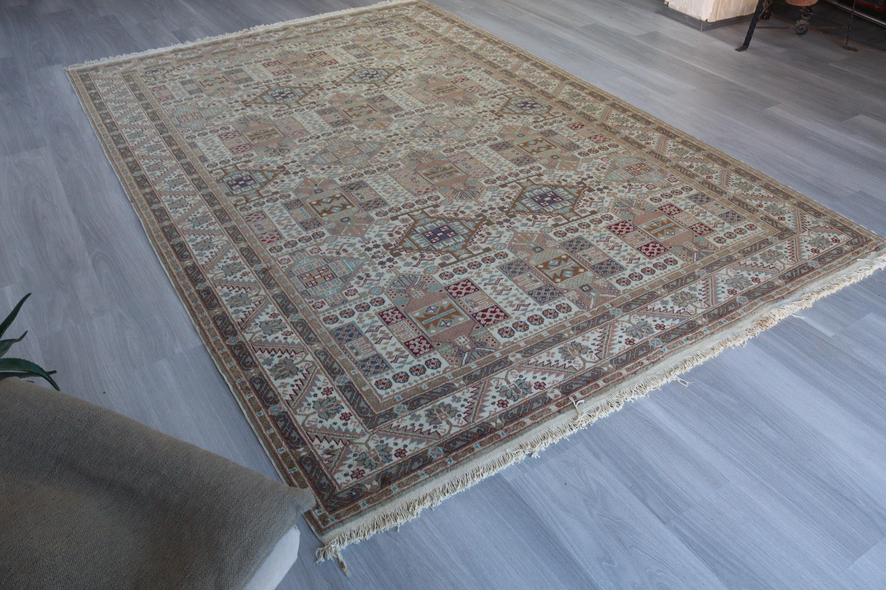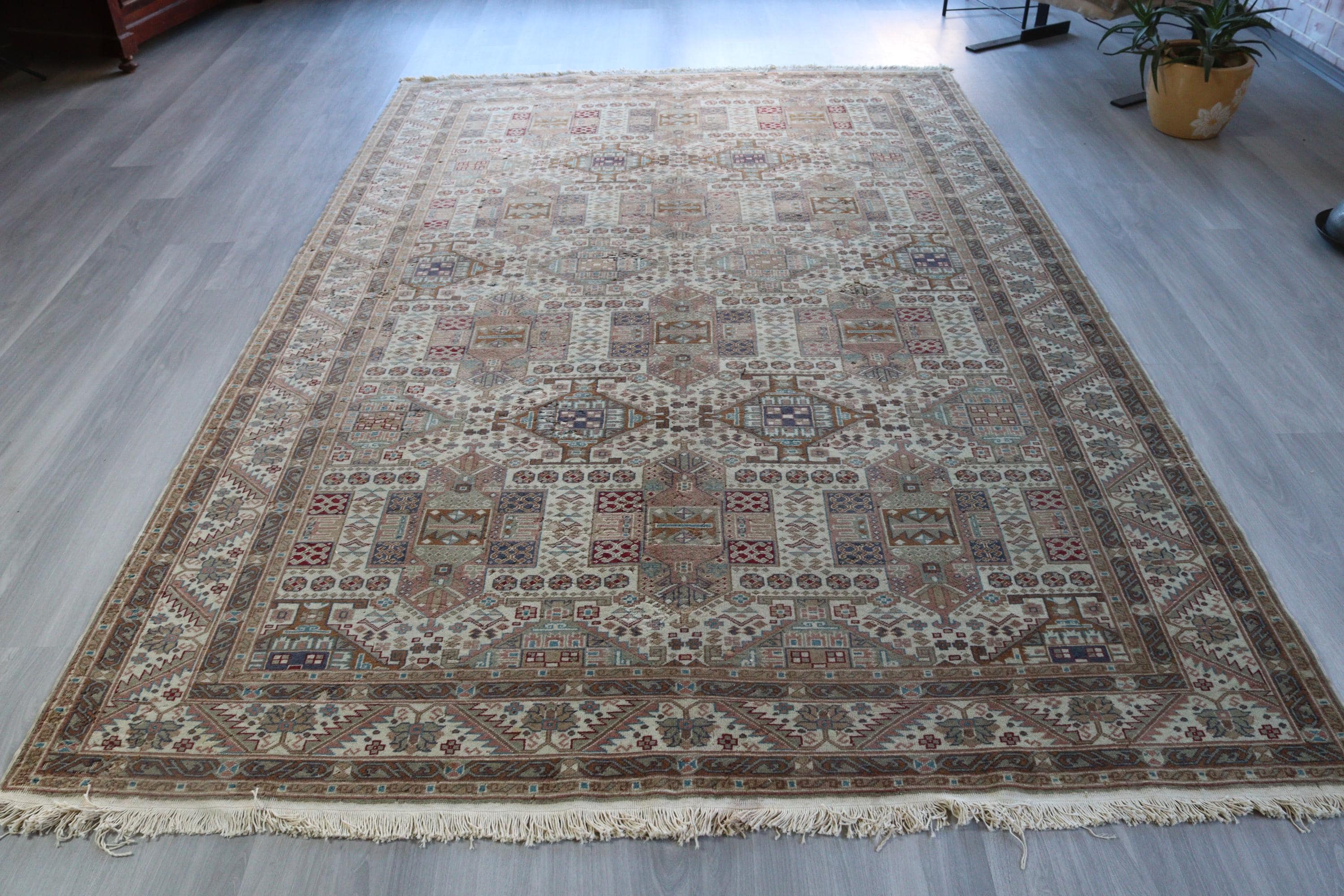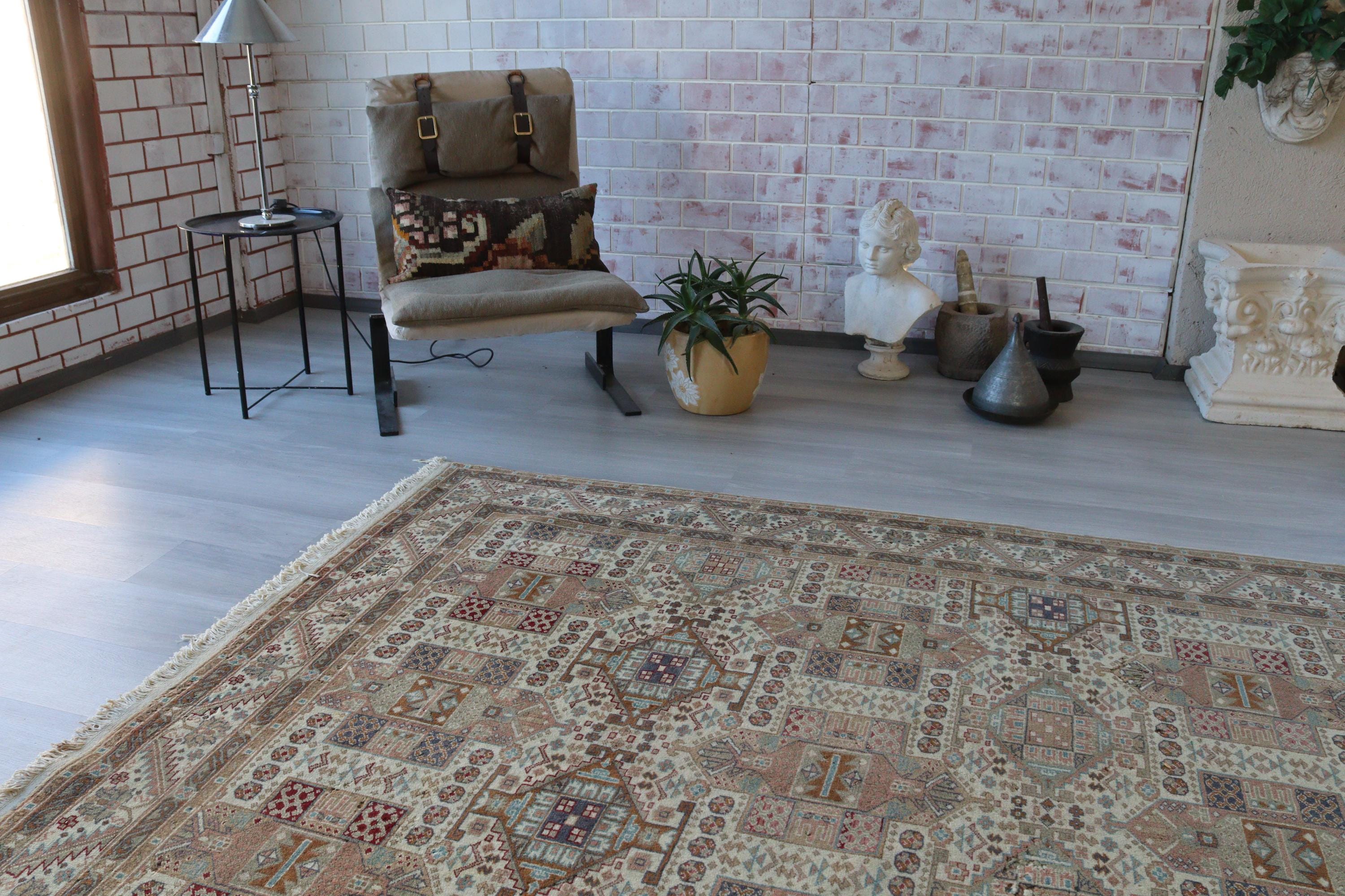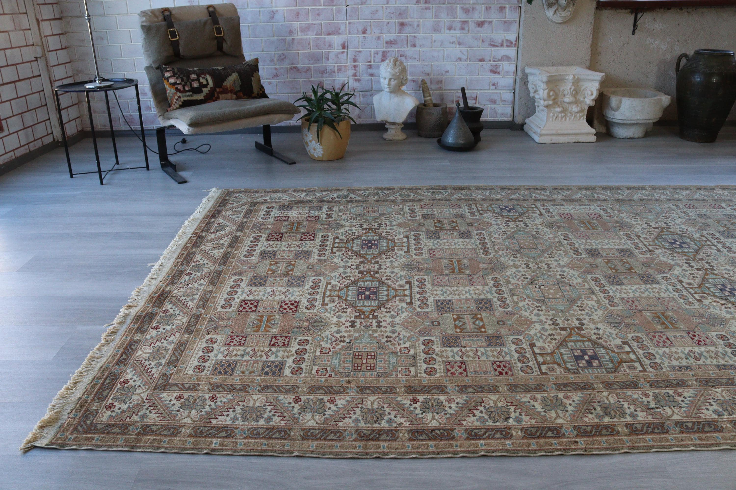 7'x10' Vintage Turkish Rug, Large Pale Rug, Overall Design Traditional Rug, Vintage Oushak Rug / C-6248 / 6'6'' x 9'8''