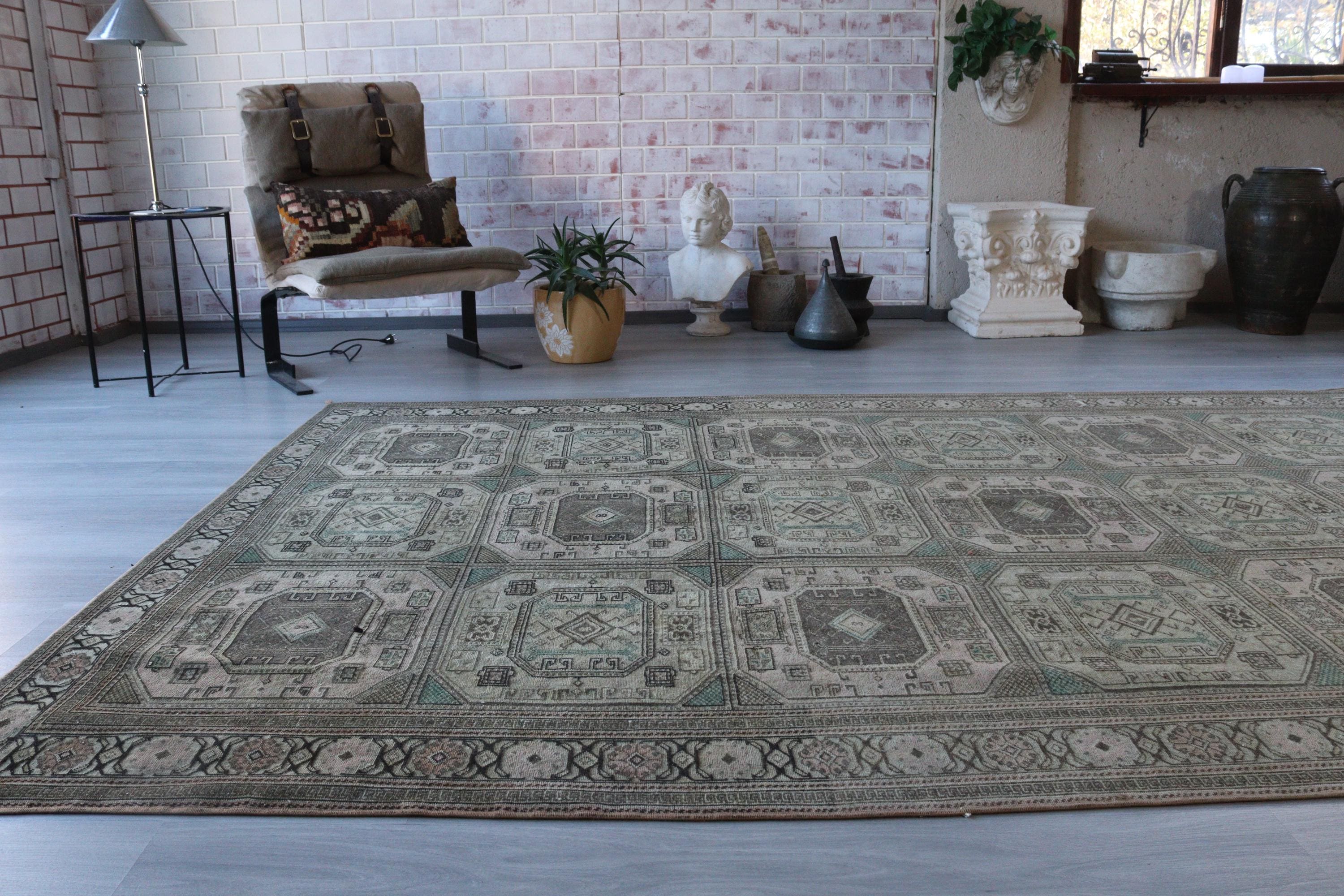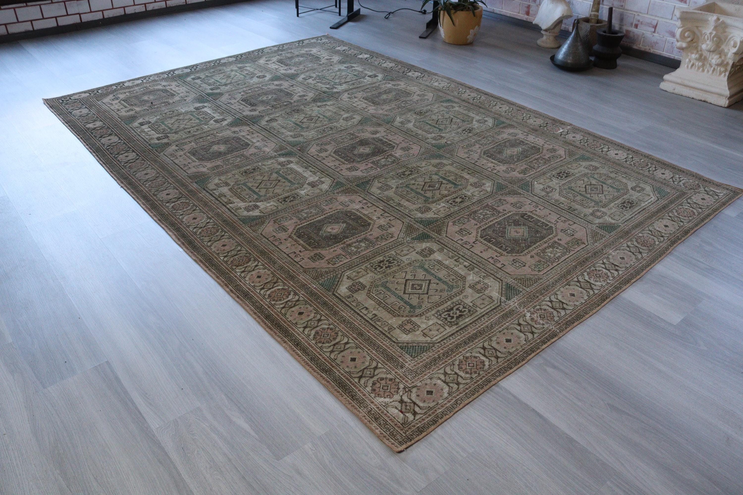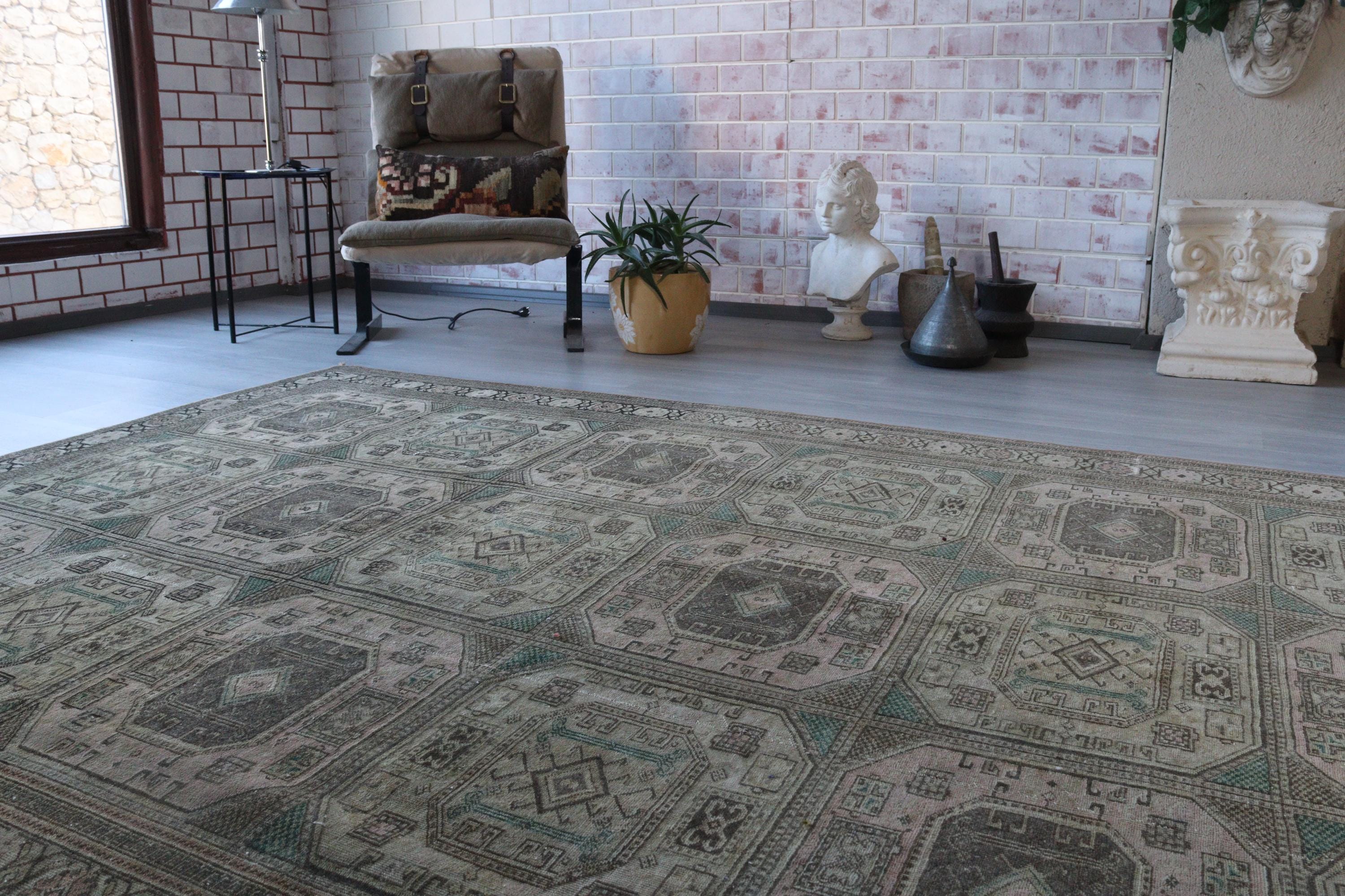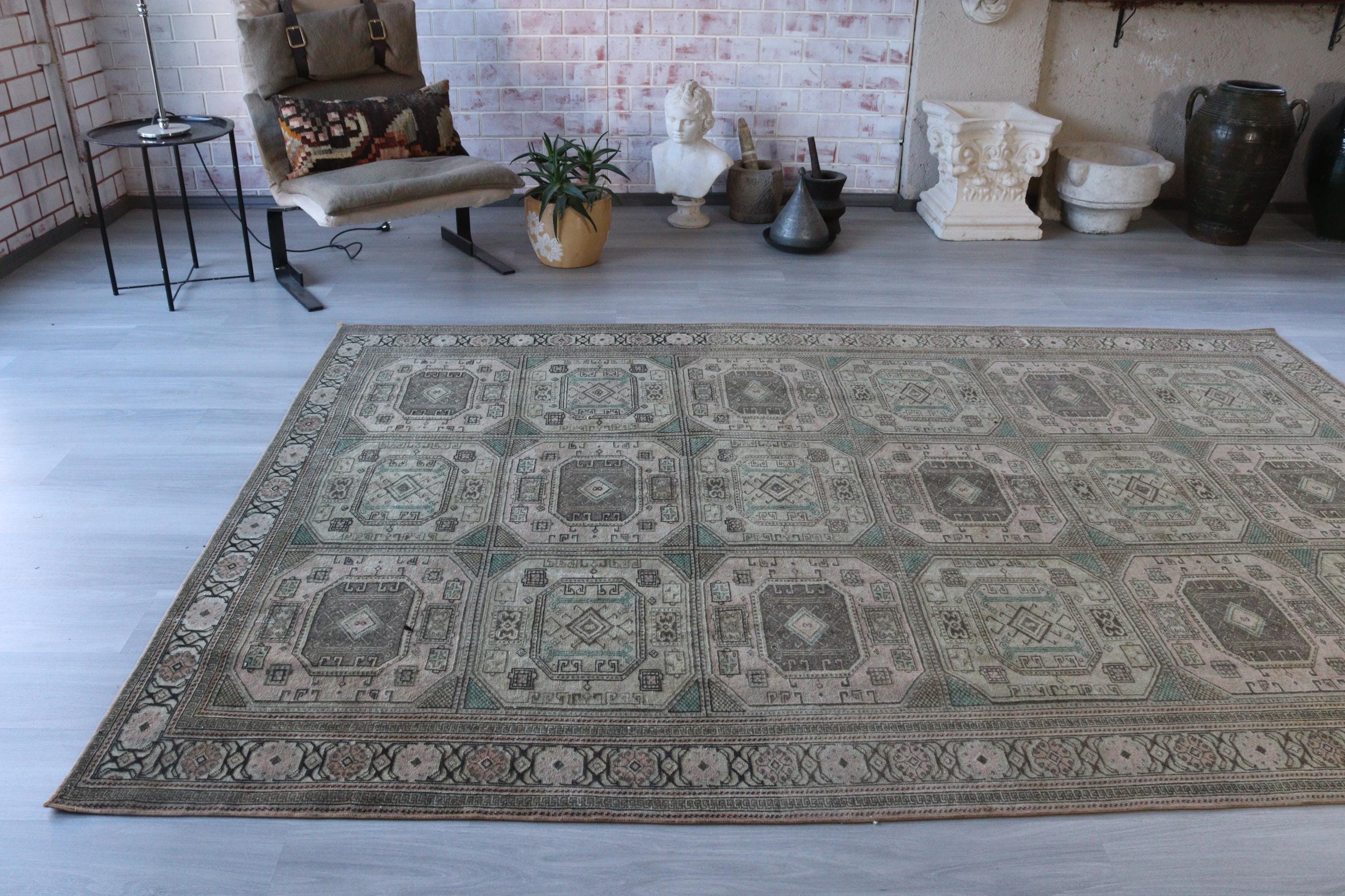 7'x10' Rugs, Vintage Kayseri Rug, Large Pale Rug, Vintage Mute Rug / C-6256 / 6'5''x9'6''