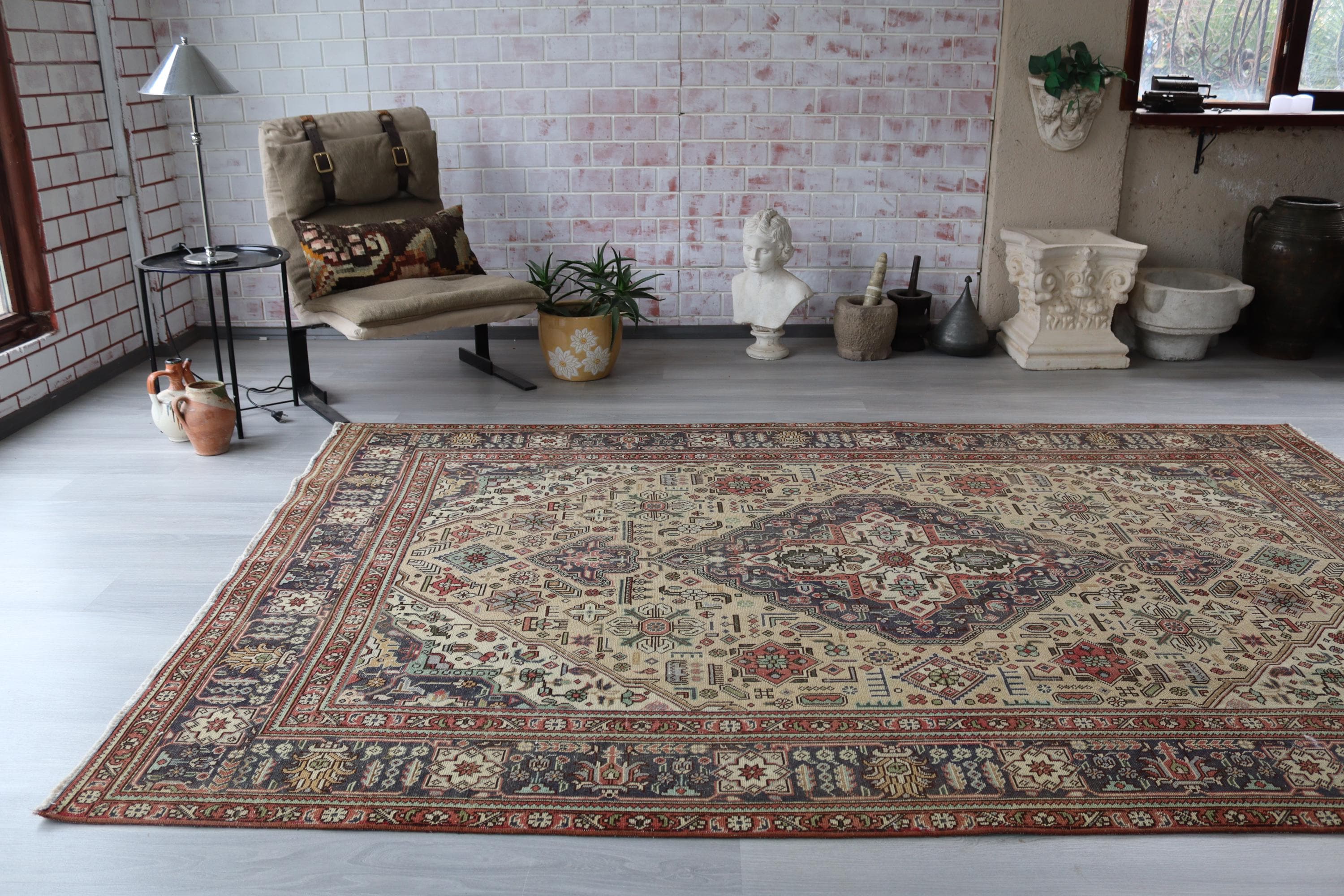 6'x9' Rugs, Vintage Persian Medallion Rug, Mute Area Rug , 6'3''x9'7'' / C-6282