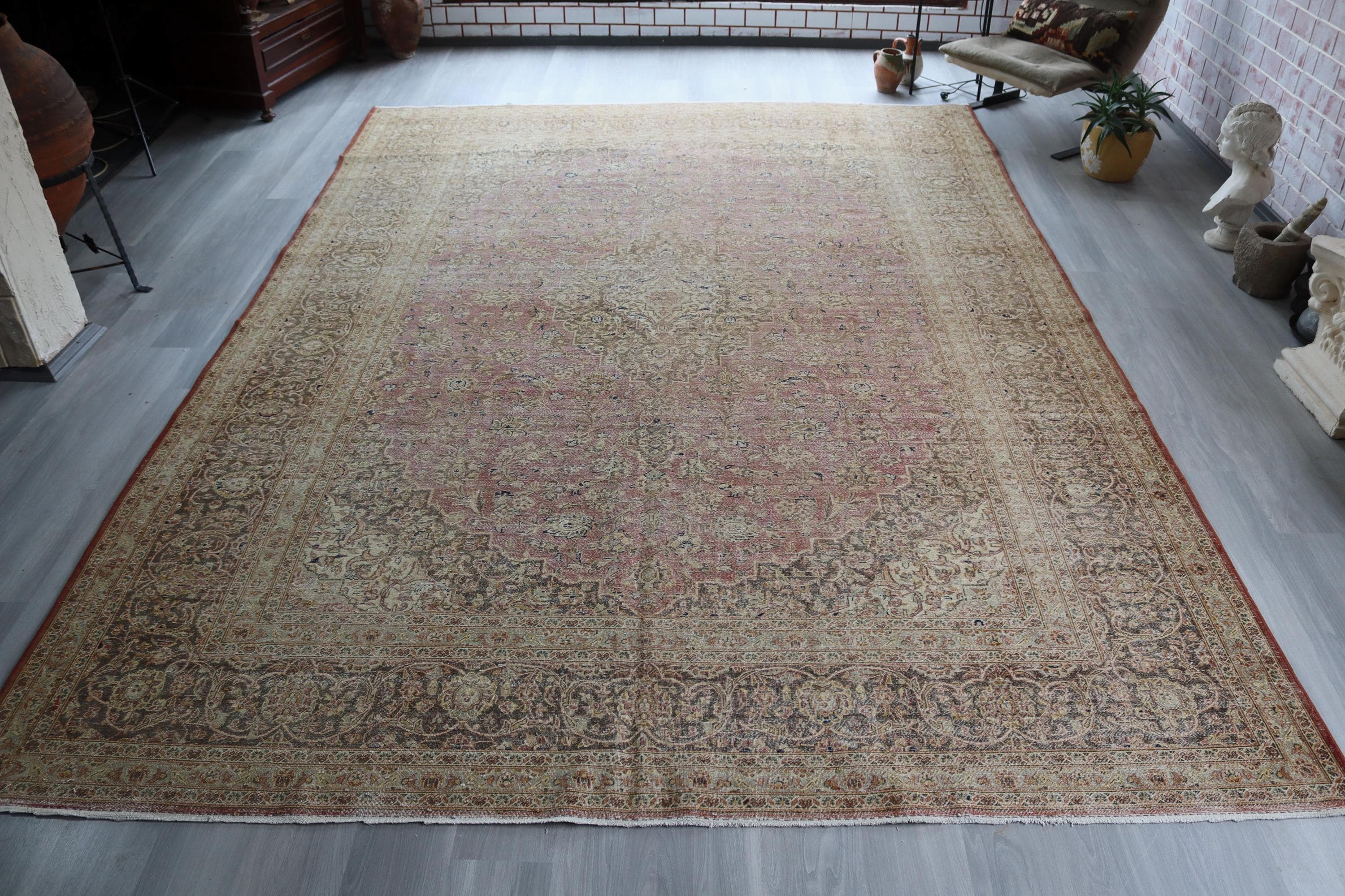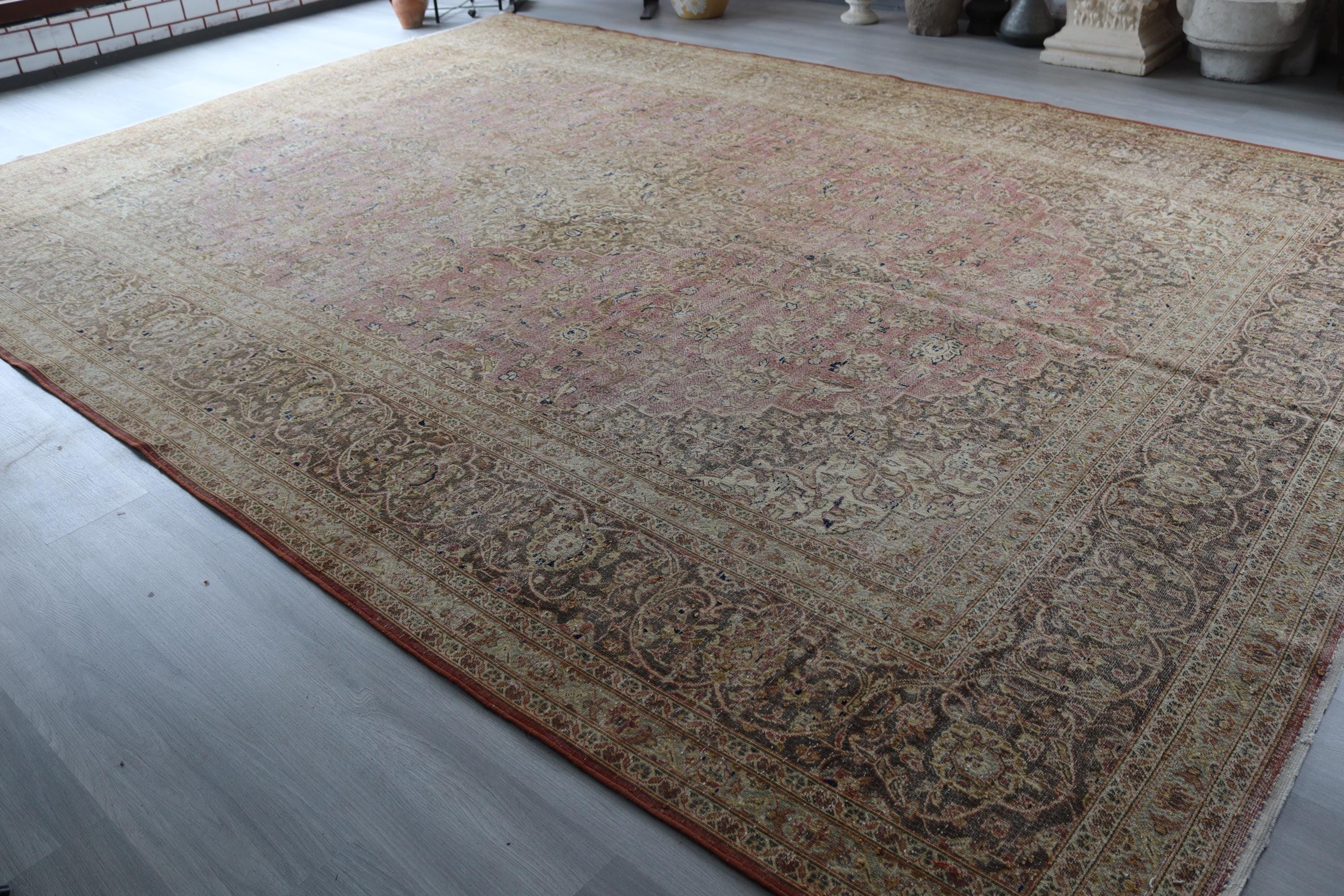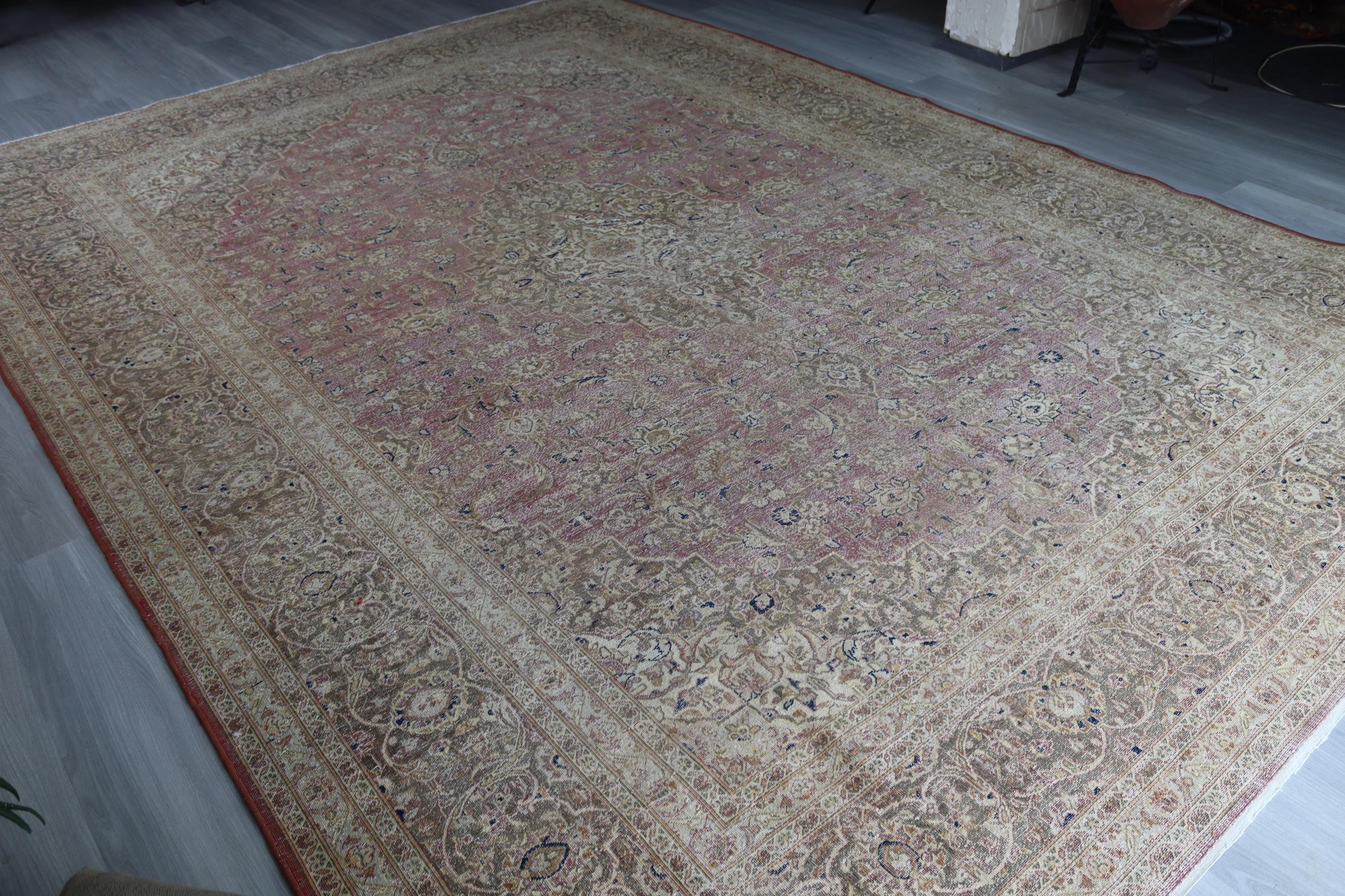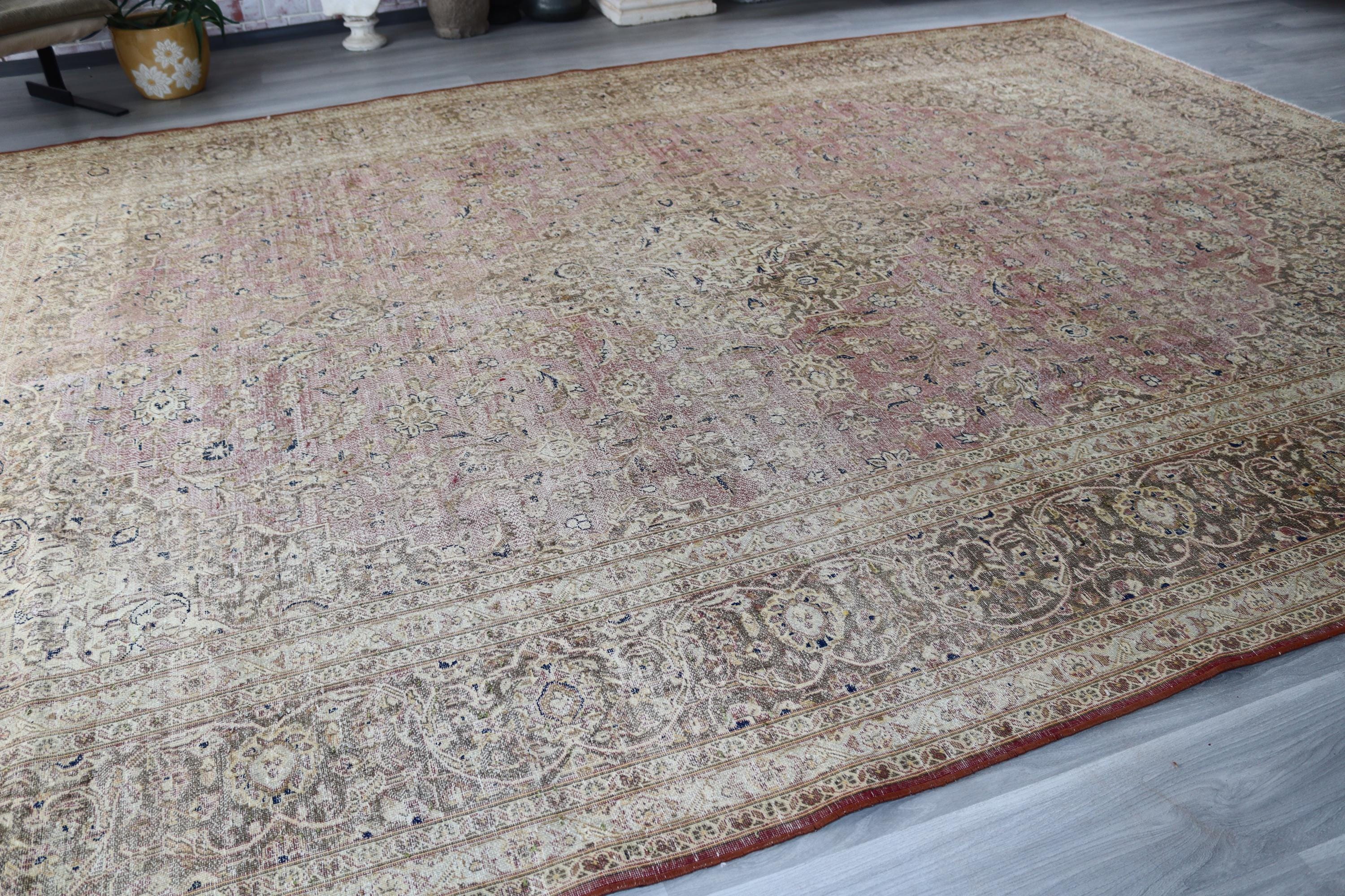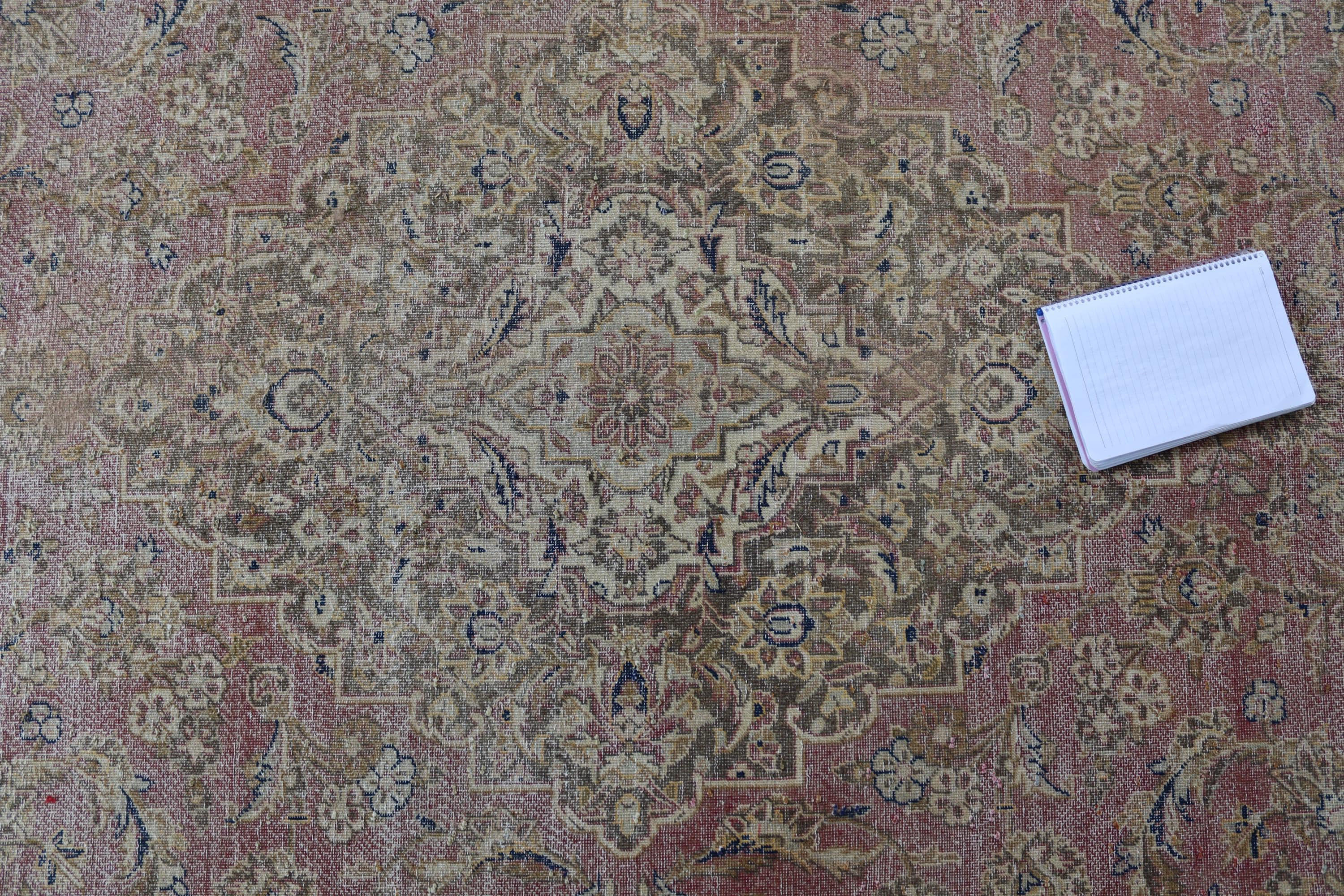 Powder Pink- Beige Rug , Vintage Mute Low Piled Oushak Rug 9'6''x13'5'' / C-6283