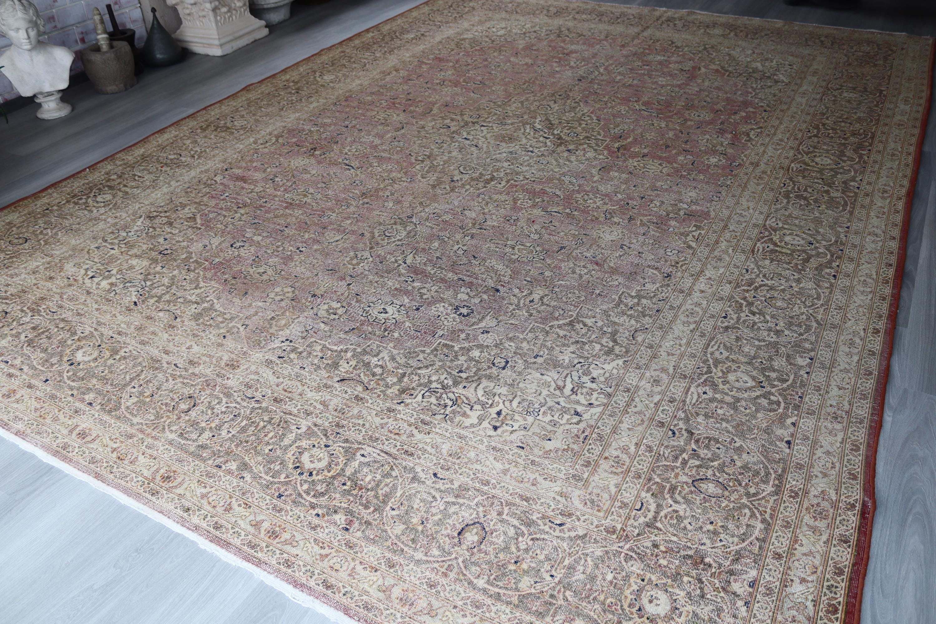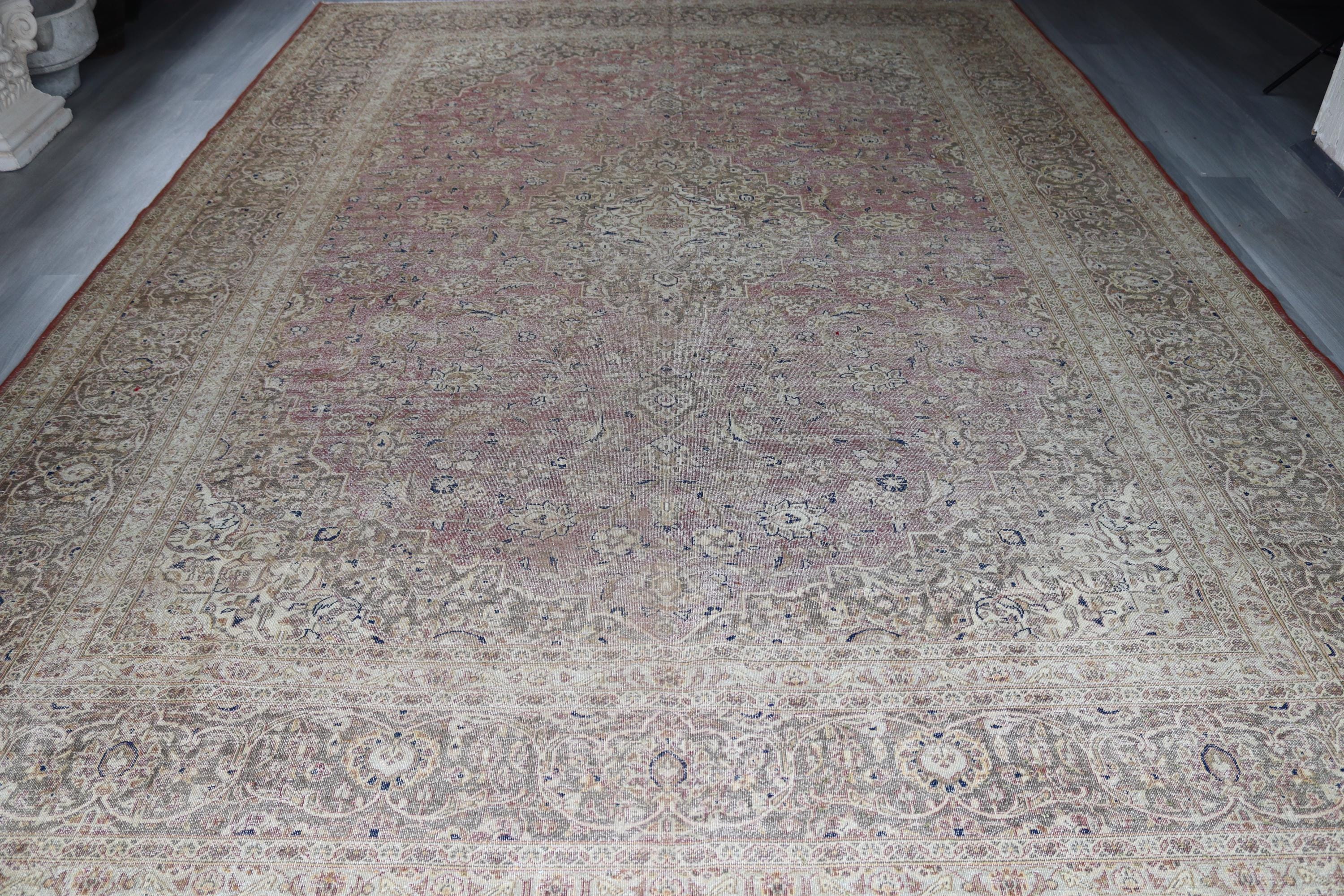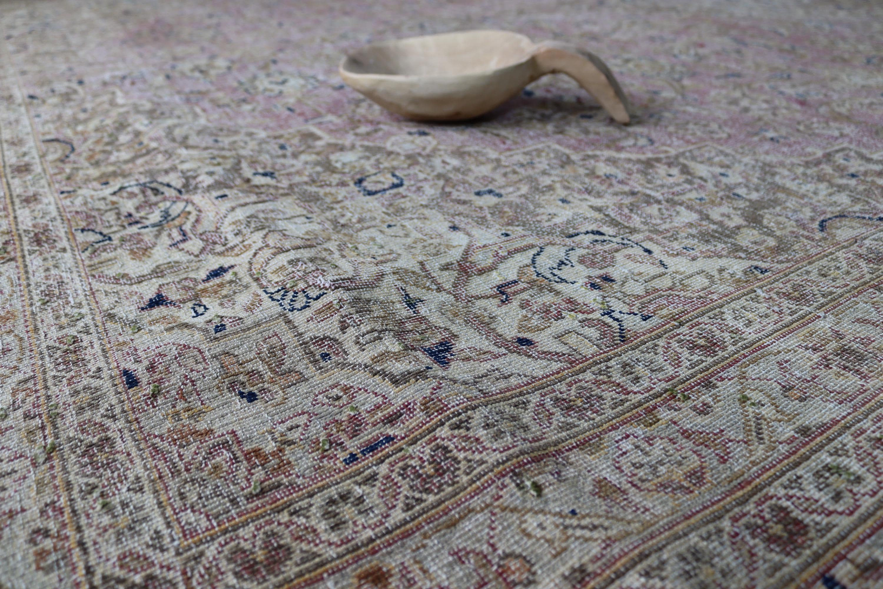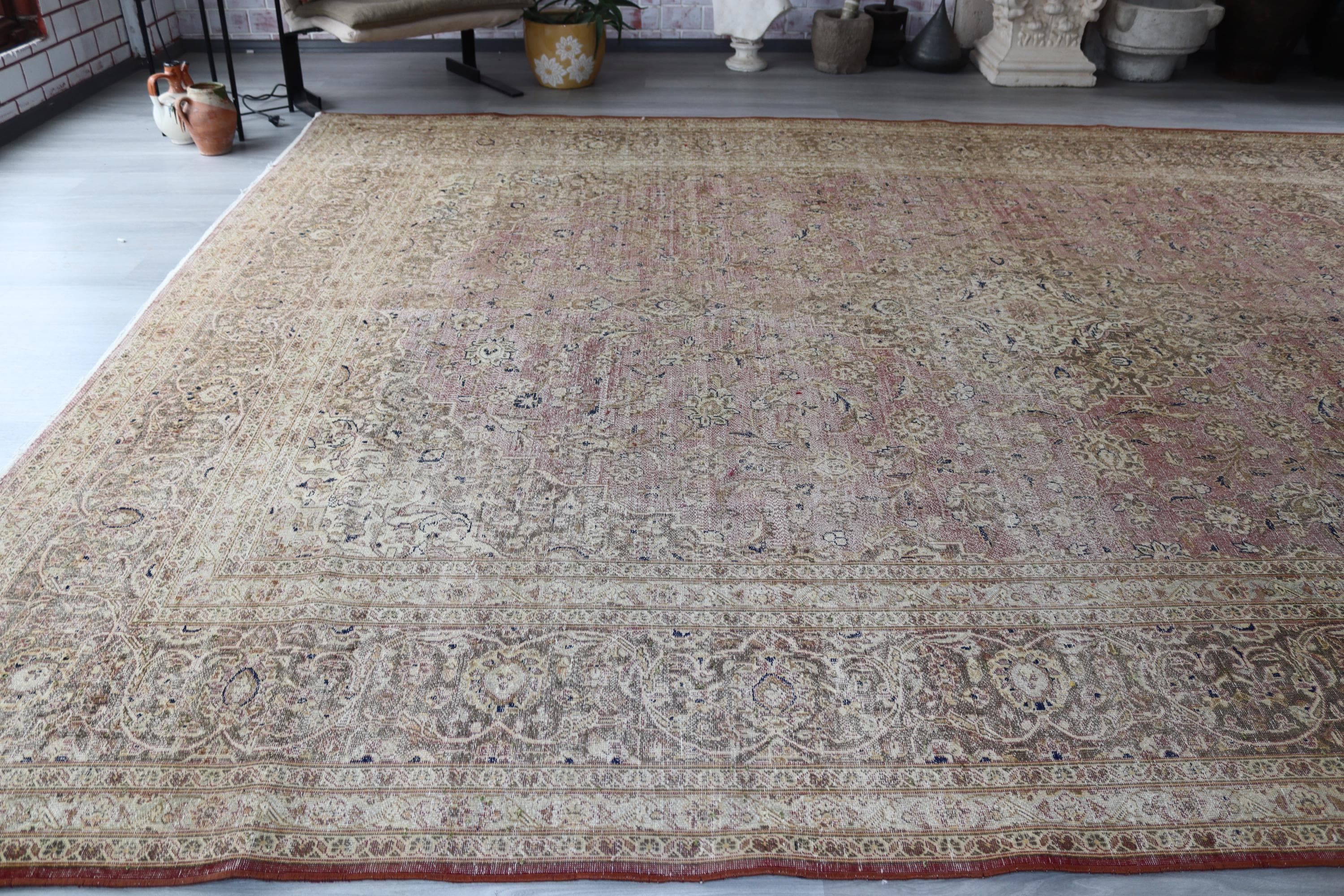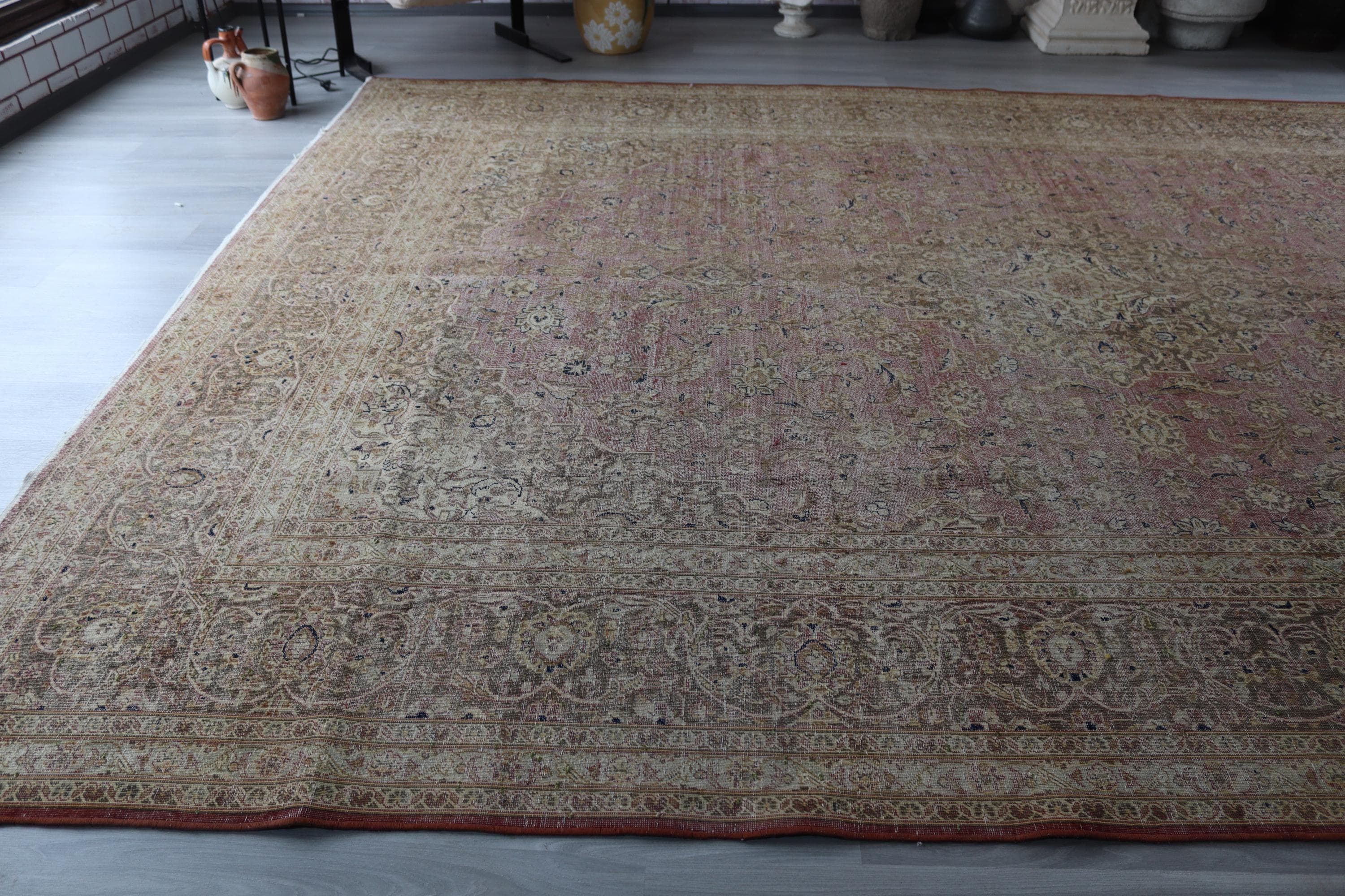 Powder Pink- Beige Rug , Vintage Mute Low Piled Oushak Rug 9'6''x13'5'' / C-6283