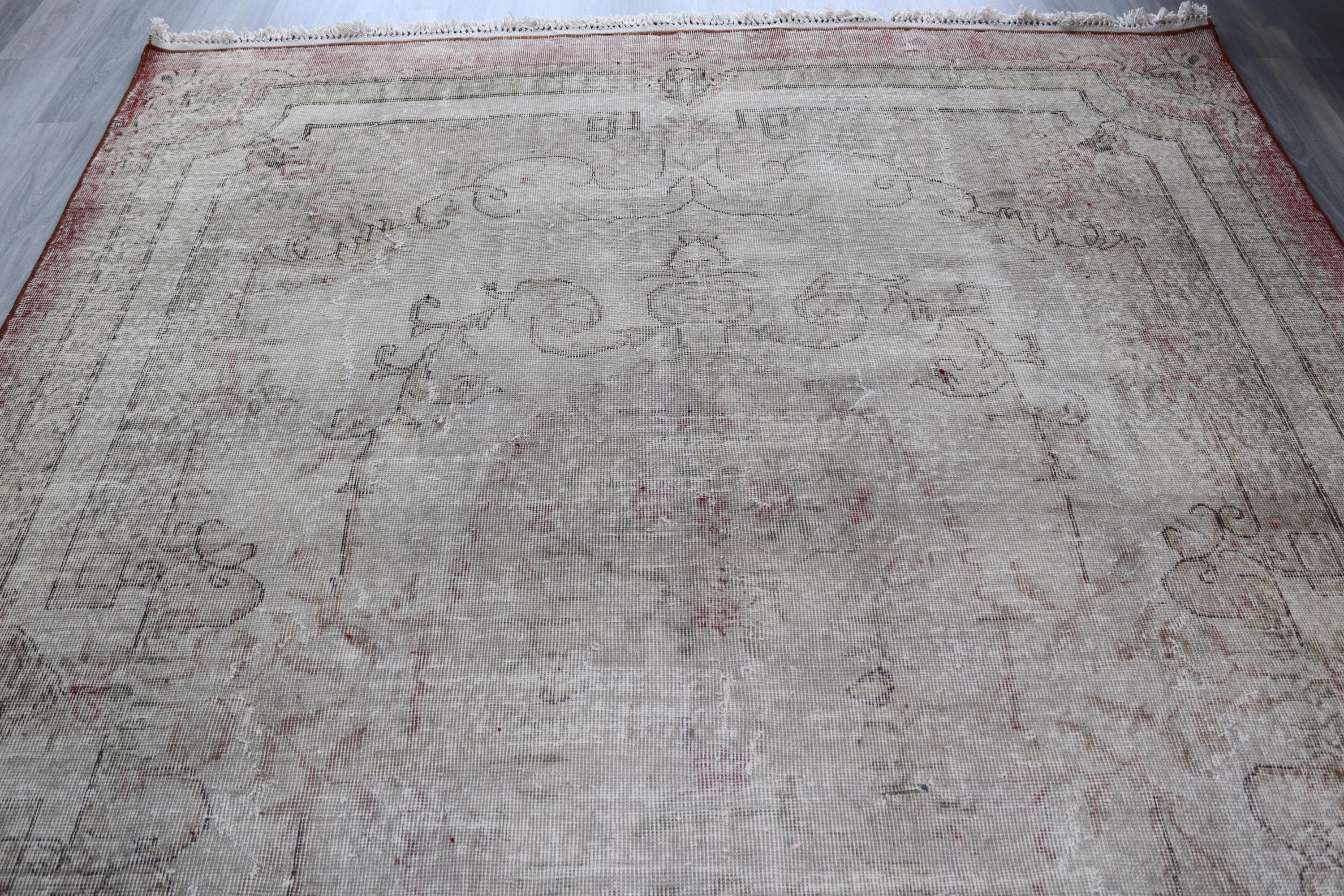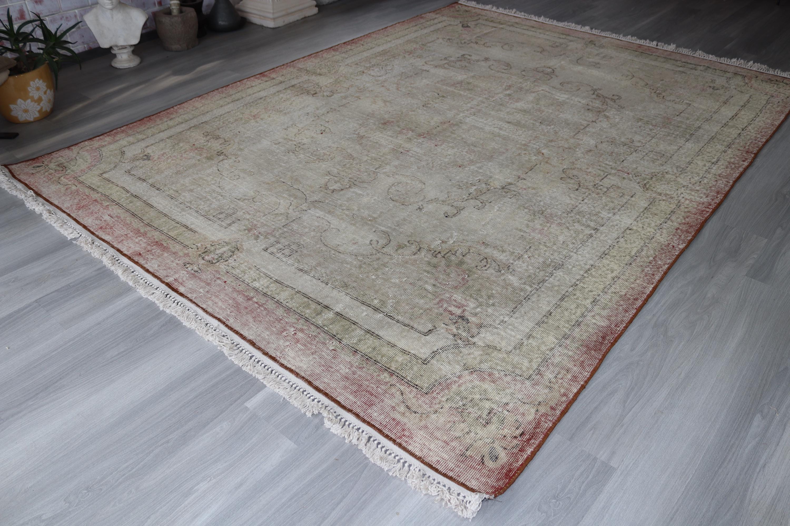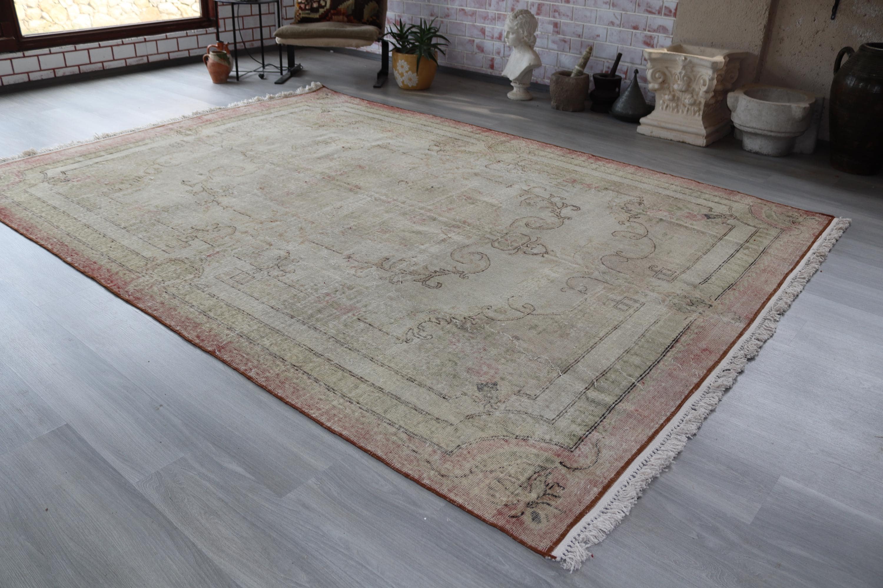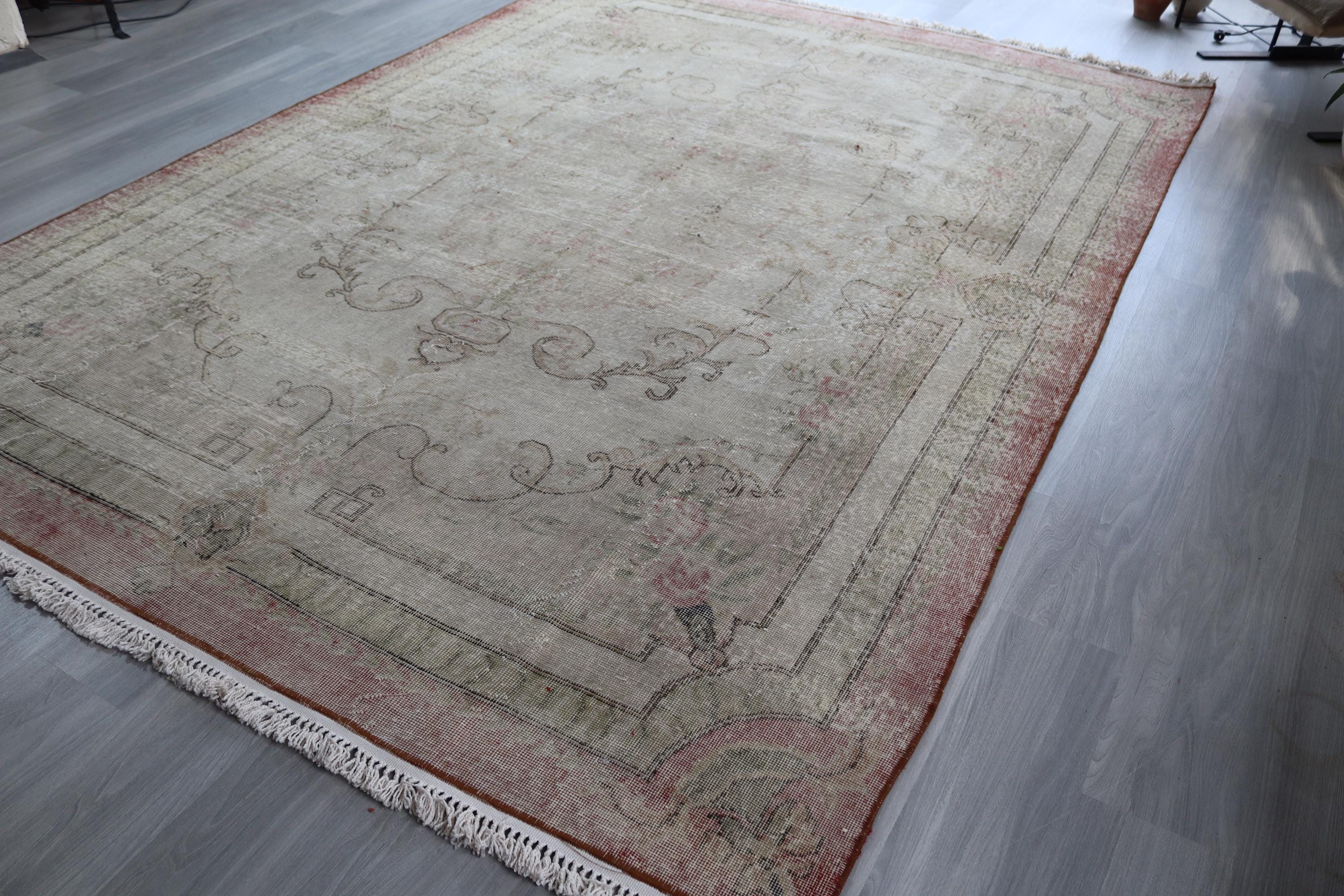 Distressed Oushak Rug, Large Pale Handwoven Rug , 7'6''x10'6'' / C-6292