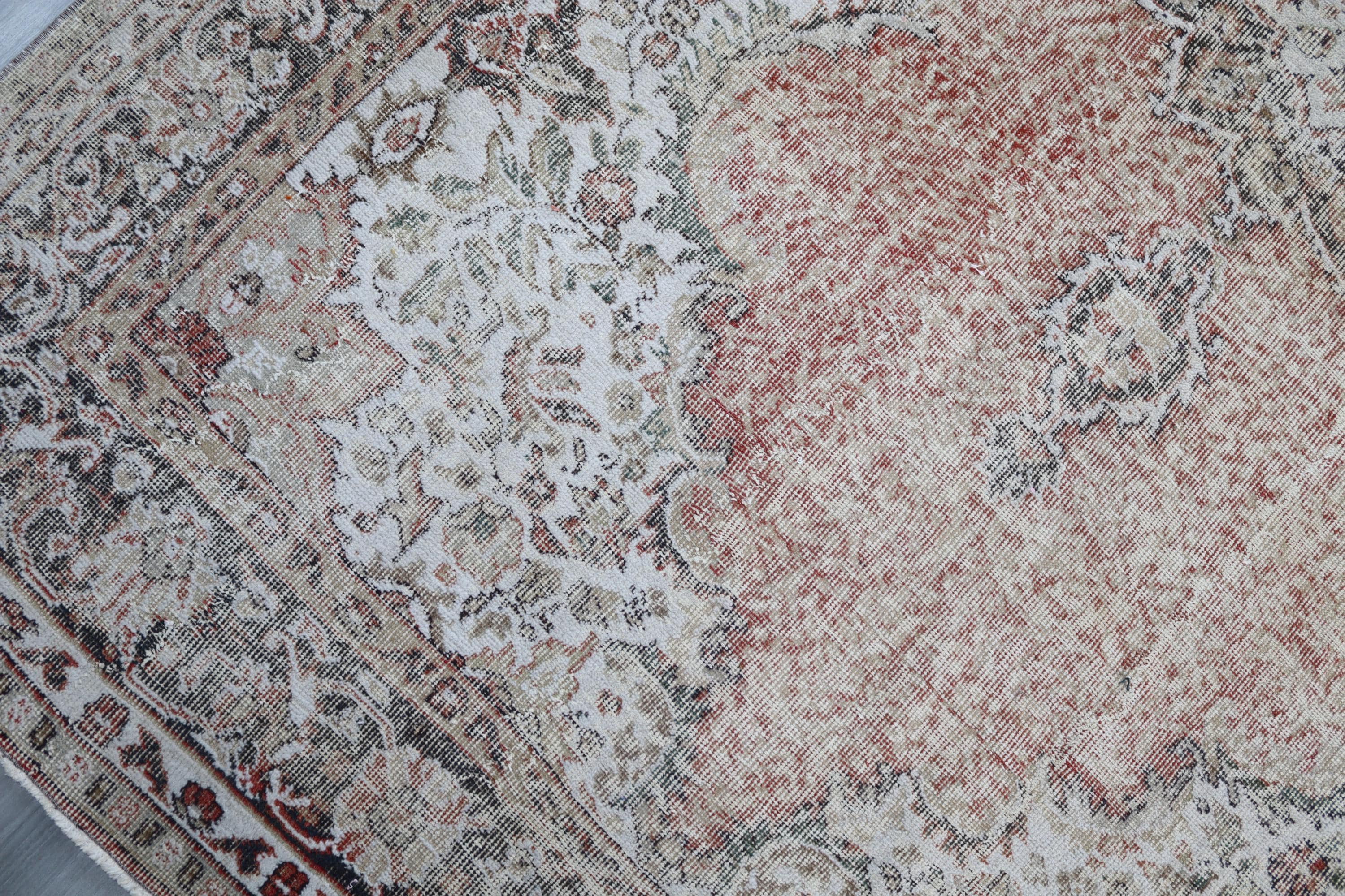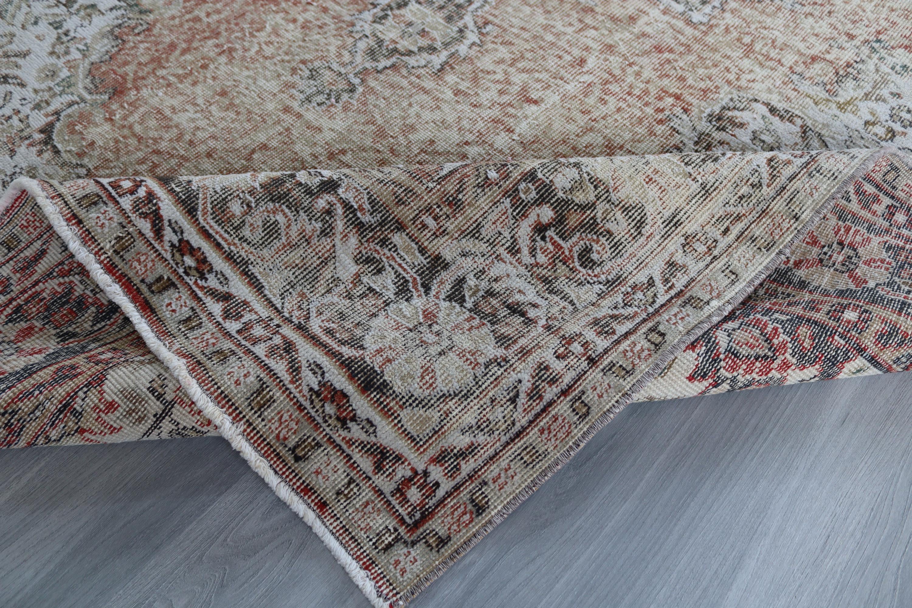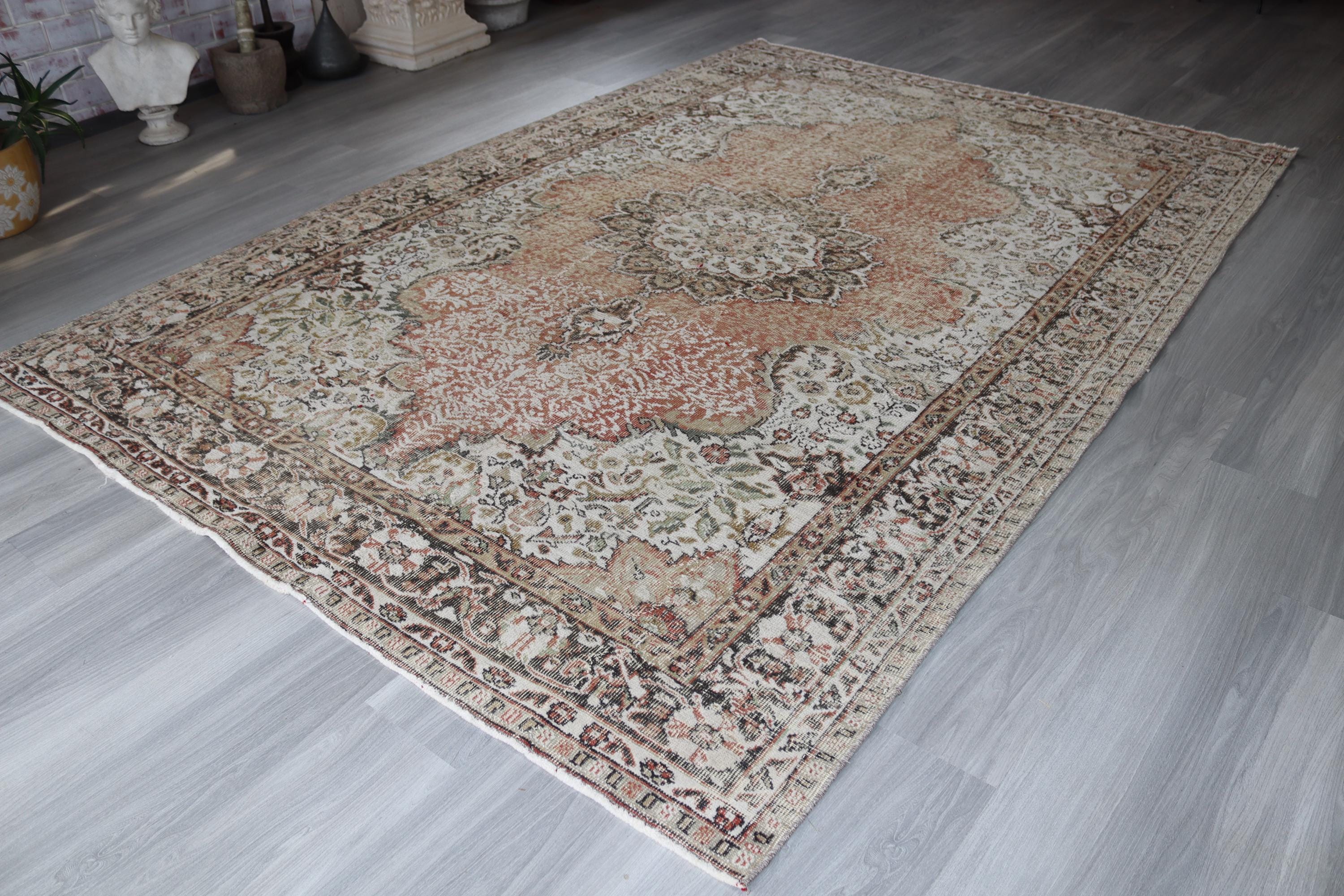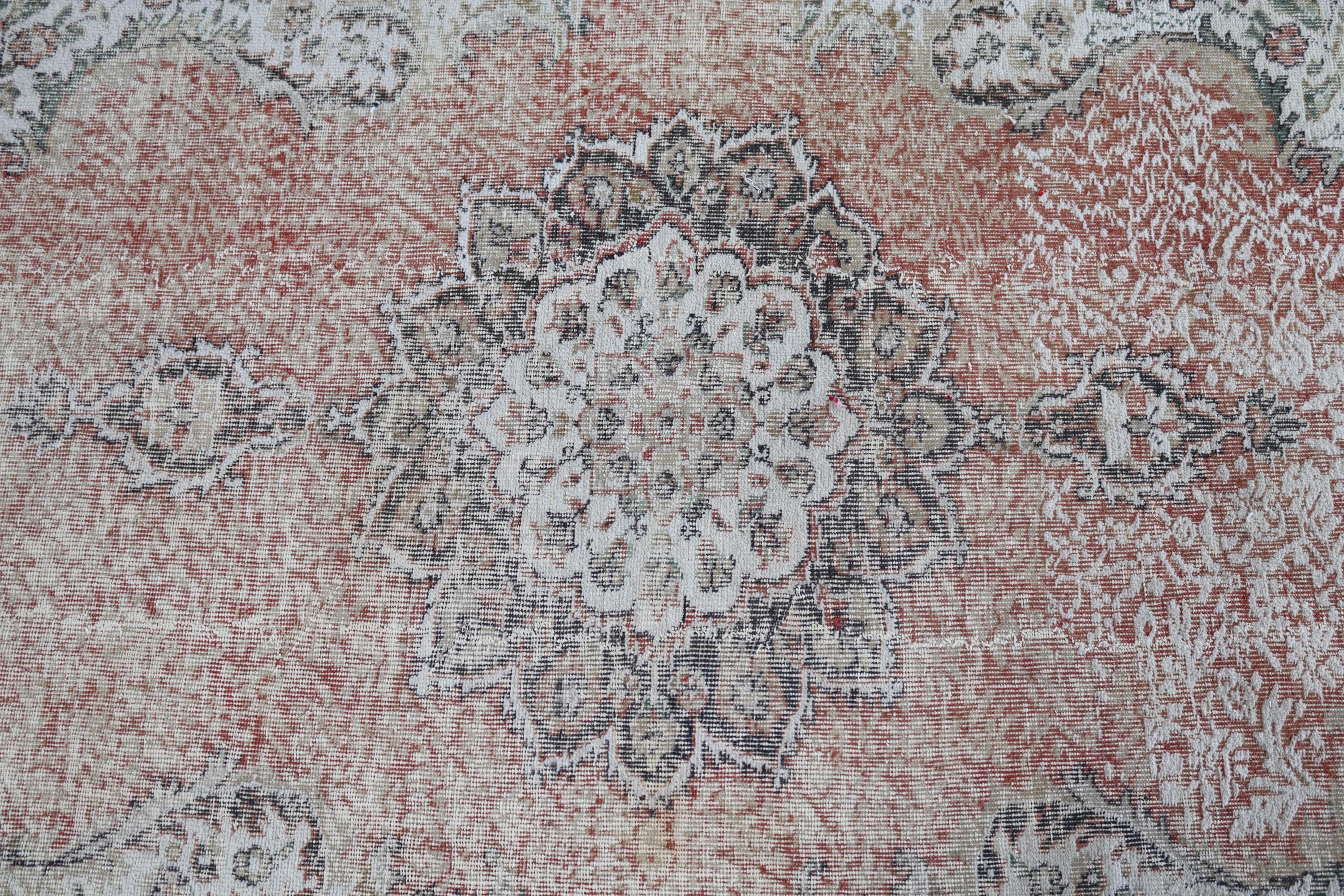 Muted Floral Medallion Low Piled Oushak Rug , Large Vintage Rug , 6'7''x10'1'' / C-6293
