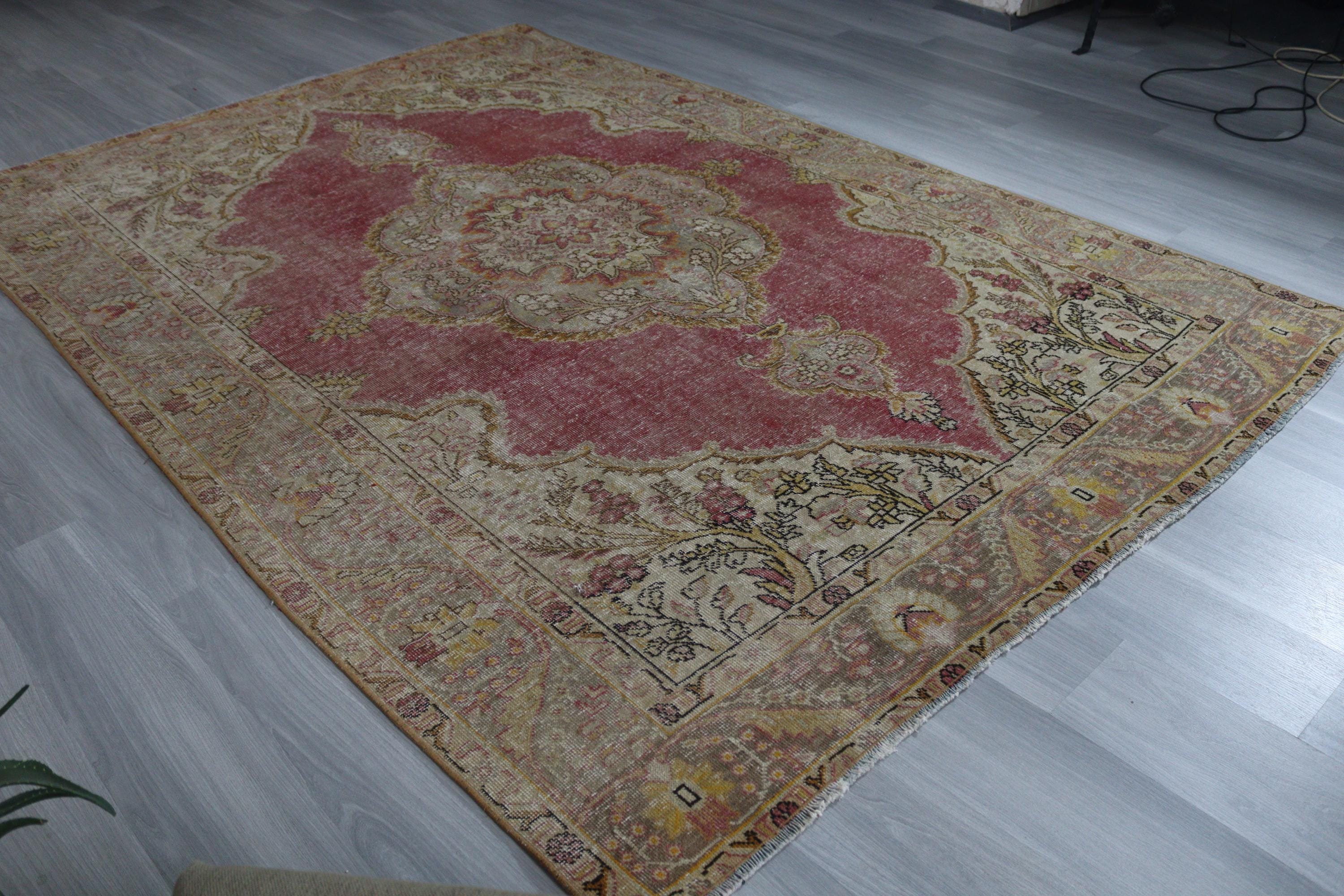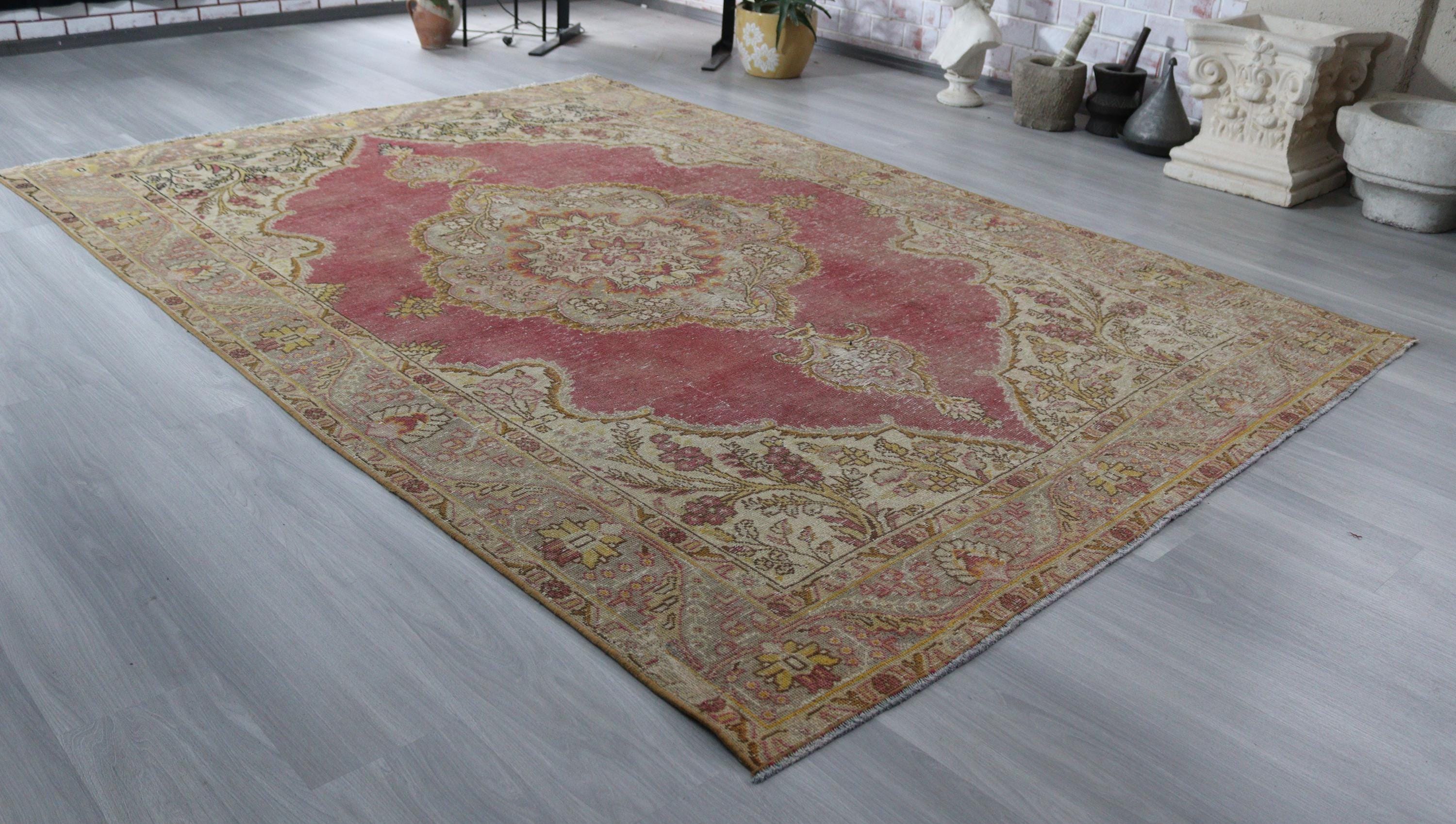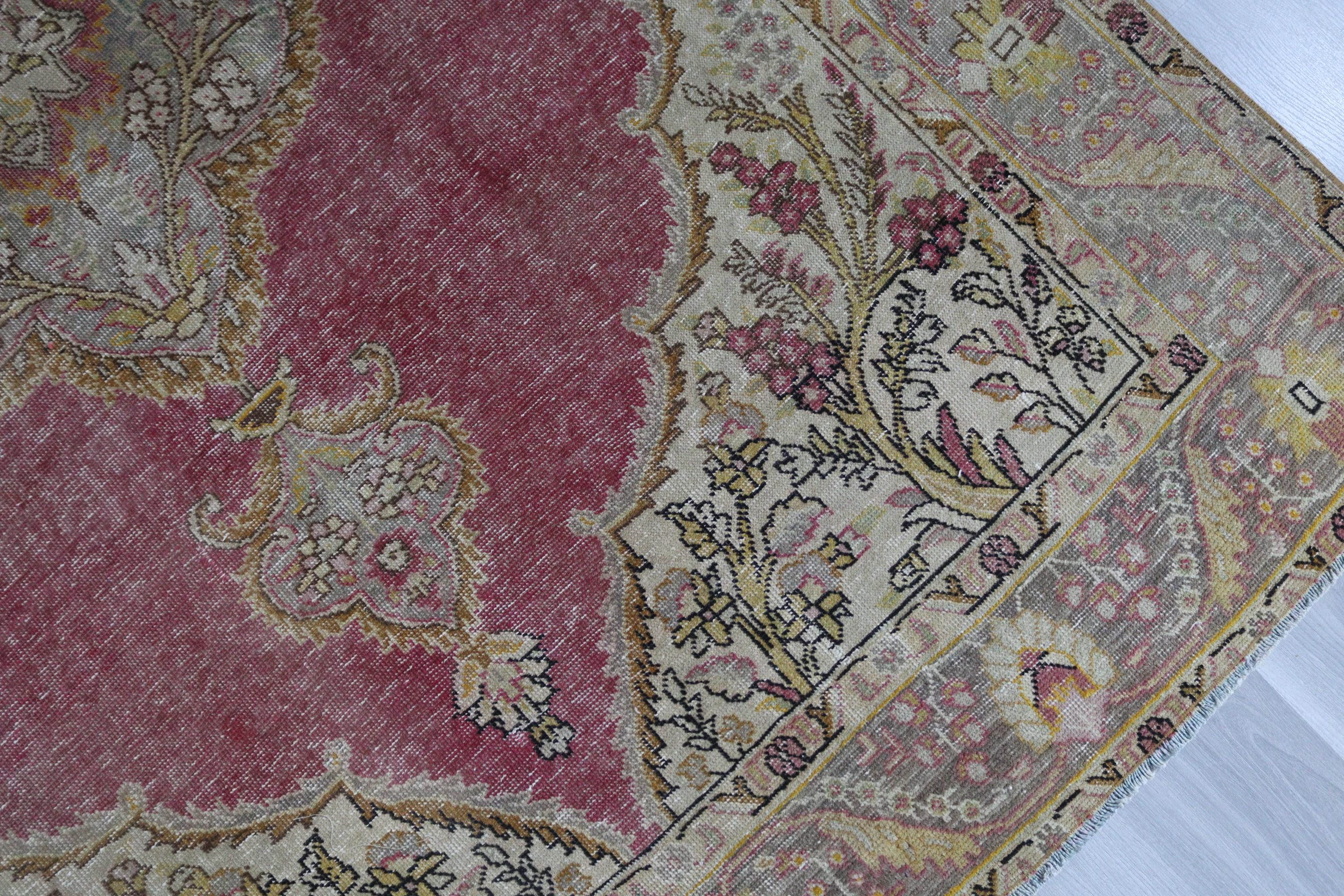 Camel - Deep Rose Medallion Low Piled Large Turkish Rug ,