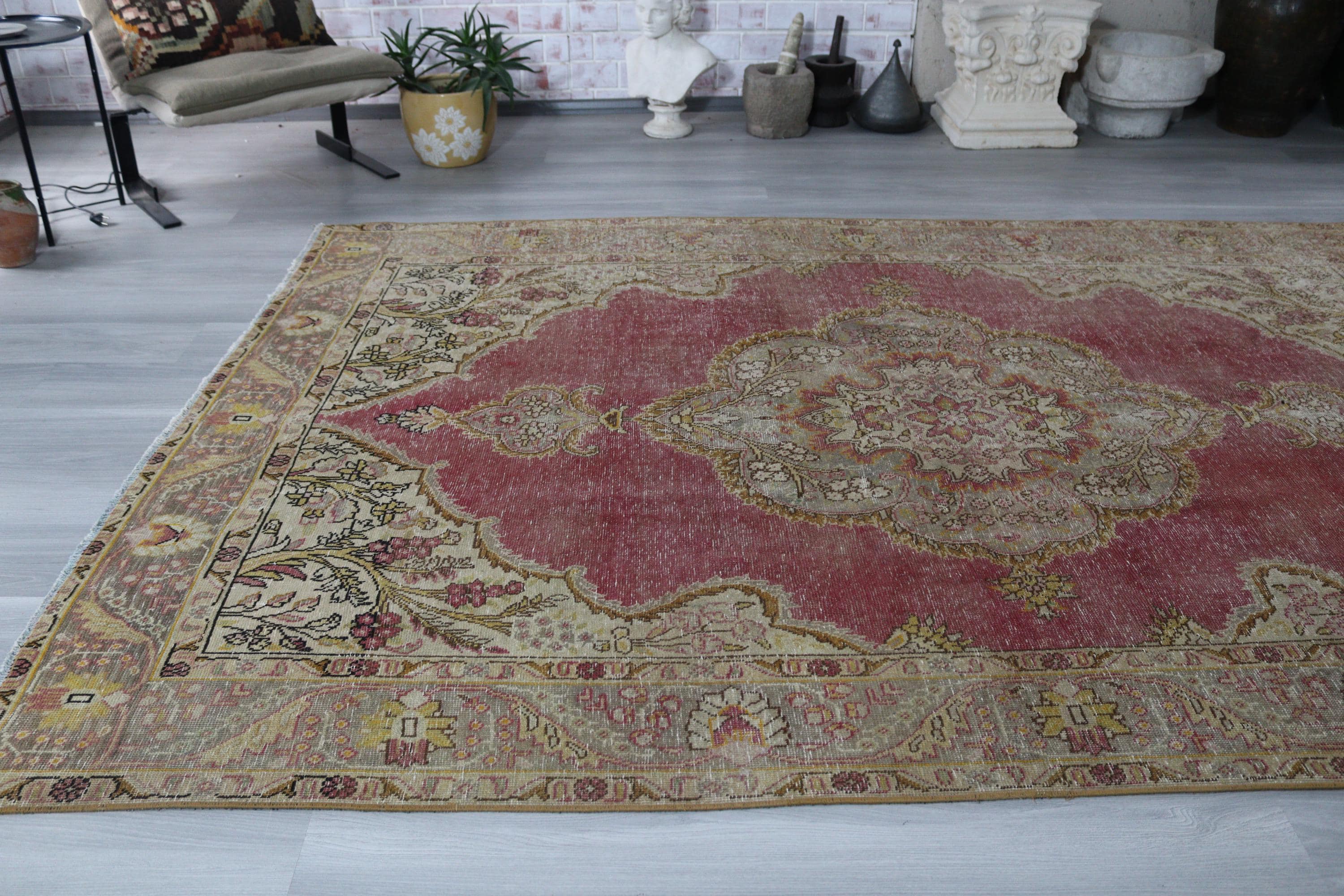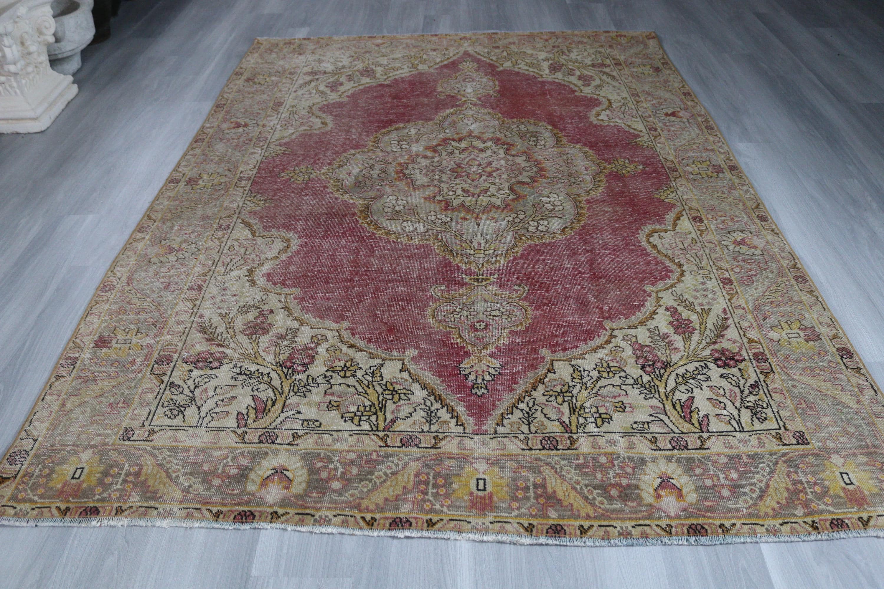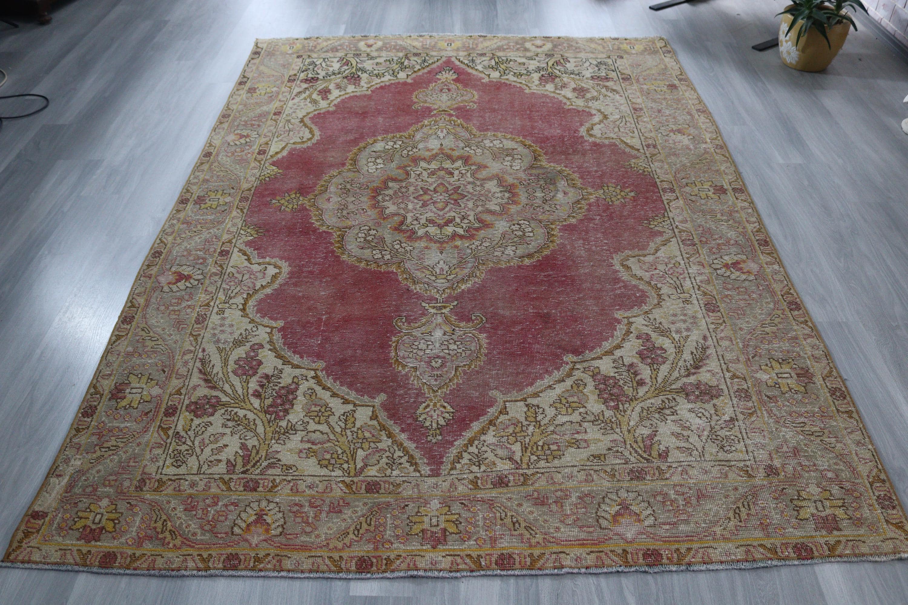Camel - Deep Rose Medallion Low Piled Large Turkish Rug ,